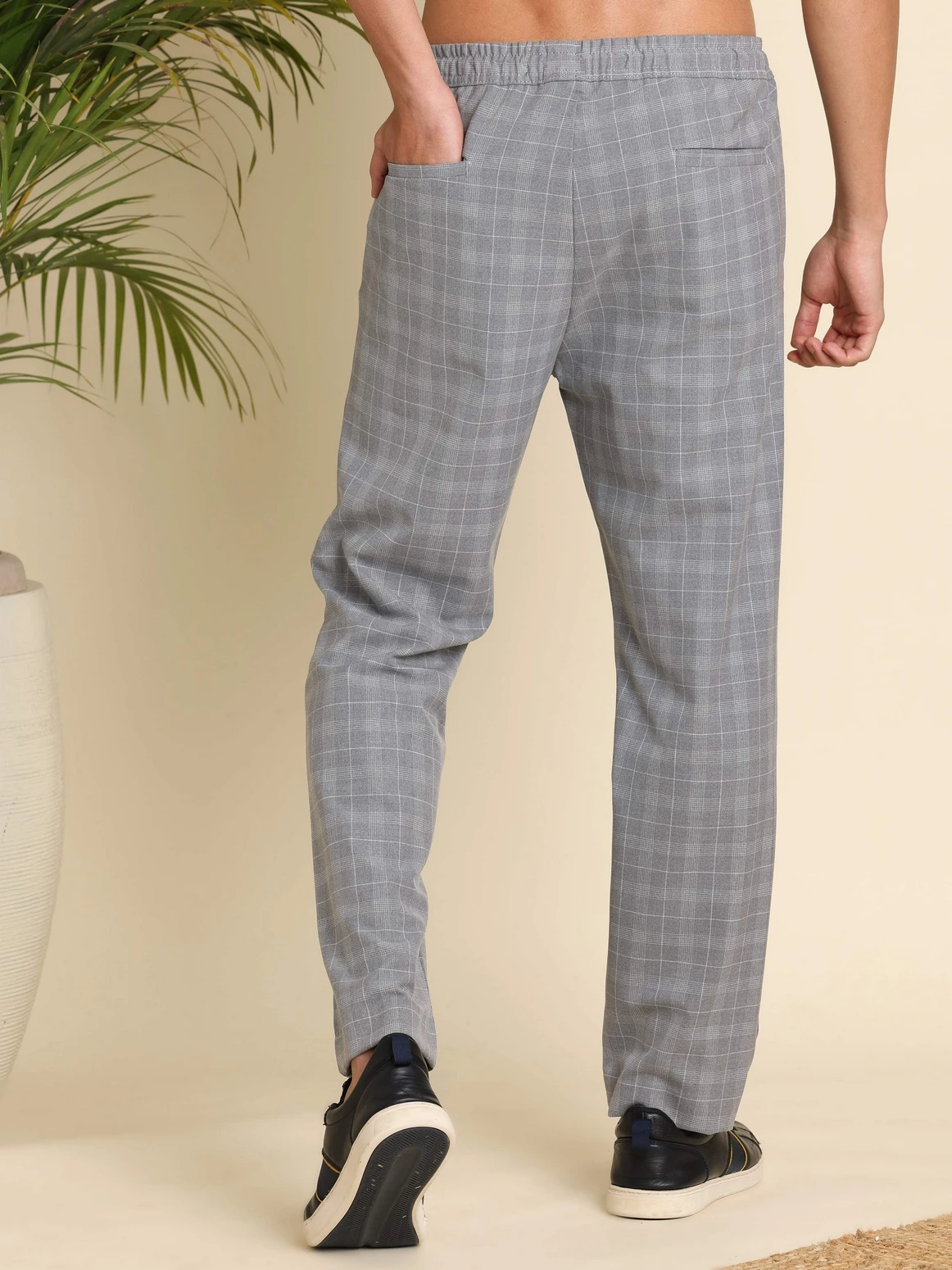Checked relaxed straight-fit wrinkle-free regular trousers designed for style and convenience. The breathable fabric and wrinkle-resistant finish make them a practical choice for work and casual occasions.