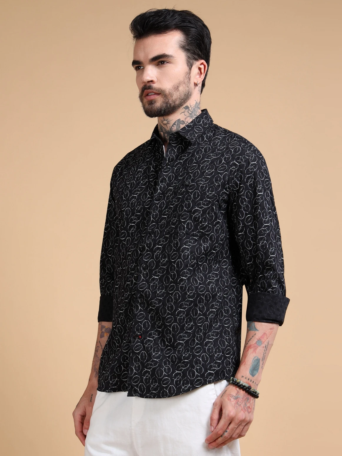 Step into modern sophistication with this Abstract Art Cotton Shirt. Crafted from premium breathable cotton, it features an all-over abstract print inspired by contemporary art. Designed in a regular fit with full sleeves, this shirt combines comfort with artistic expression — ideal for both casual outings and statement-making evenings