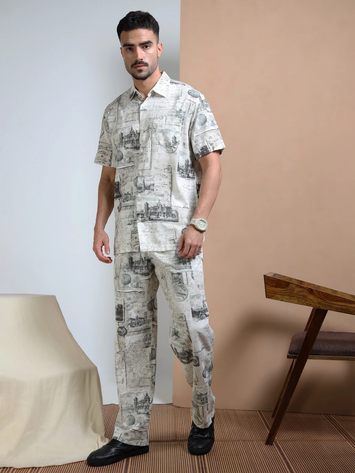 Redefine your casual wardrobe with these abstract printed co-ords crafted in a relaxed fit silhouette. The set includes a stylish shirt and matching joggers, designed with breathable cotton-blend fabric and modern prints to give you a bold, on-trend streetwear vibe