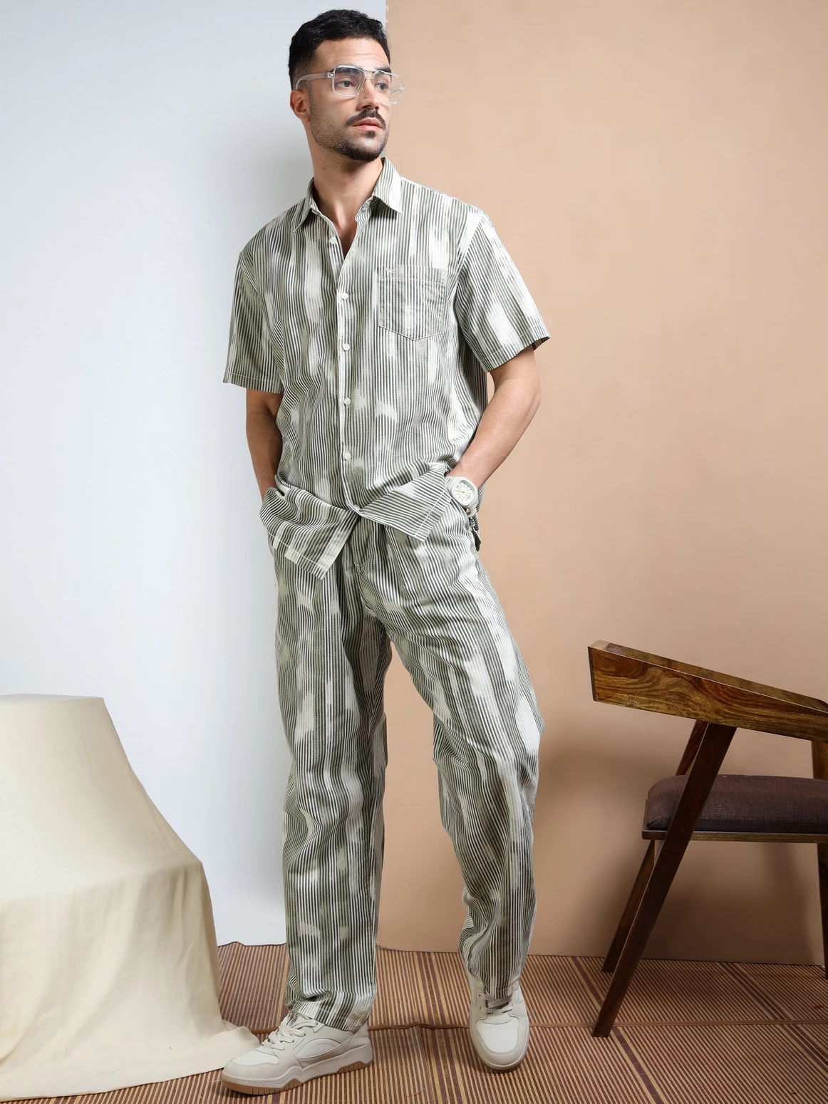 Redefine your casual wardrobe with these abstract printed co-ords crafted in a relaxed fit silhouette. The set includes a stylish shirt and matching joggers, designed with breathable cotton-blend fabric and modern prints to give you a bold, on-trend streetwear vibe