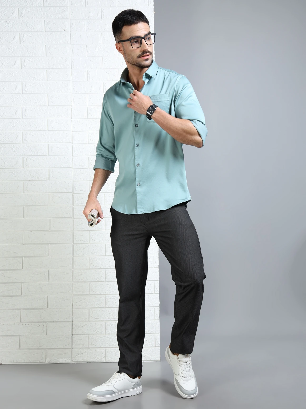 Elevate your everyday style with this Spanish Oxford satin lycra shirt. Crafted for a smooth, lustrous finish with added stretch, it combines classic design with modern comfort. The plain solid tone makes it versatile for both casual outings and semi-formal settings.
