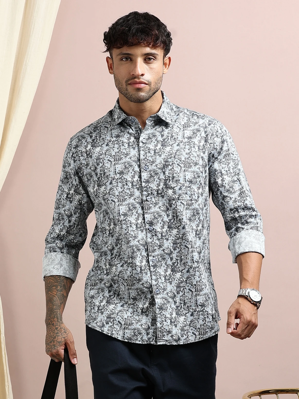 Men’s Cotton Abstract Printed Full Sleeves Shirt