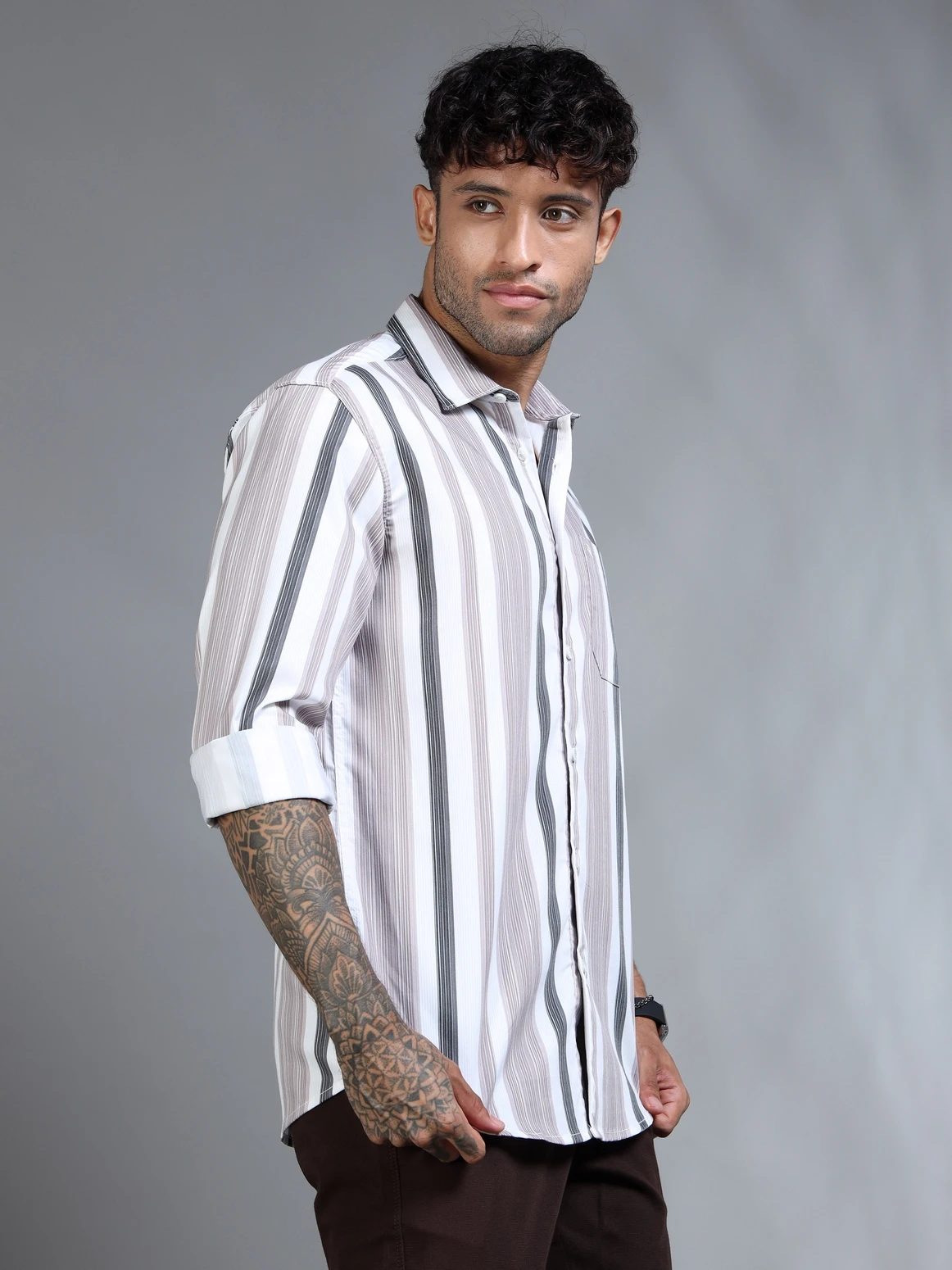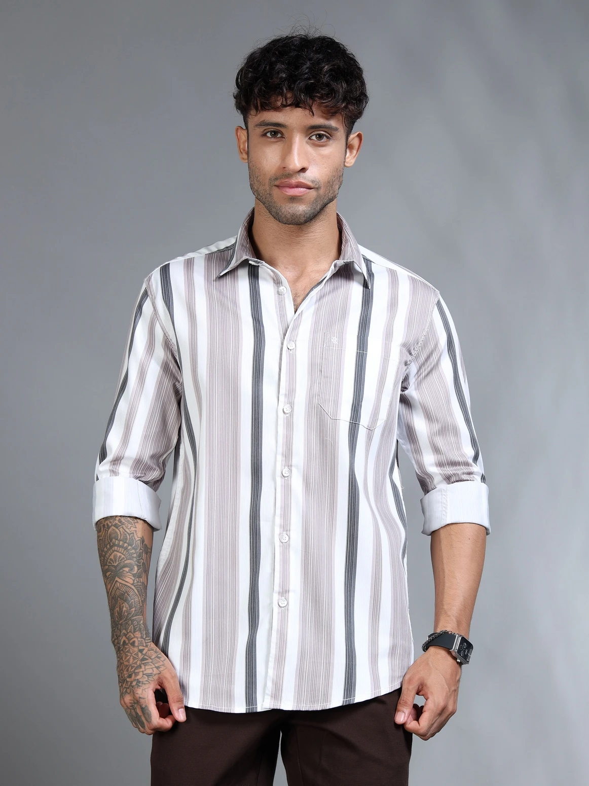 Men’s Cotton Blend Broad Strip Full Sleeves Shirt