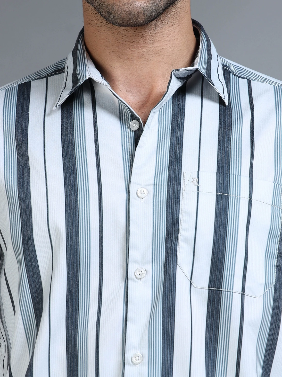 Add a fresh and stylish edge to your wardrobe with this cotton blend broad stripe shirt. Made from a soft, breathable fabric, it features bold vertical stripes that exude effortless sophistication. The shirt’s regular fit and full sleeves offer all-day comfort, making it perfect for both smart and casual occasions