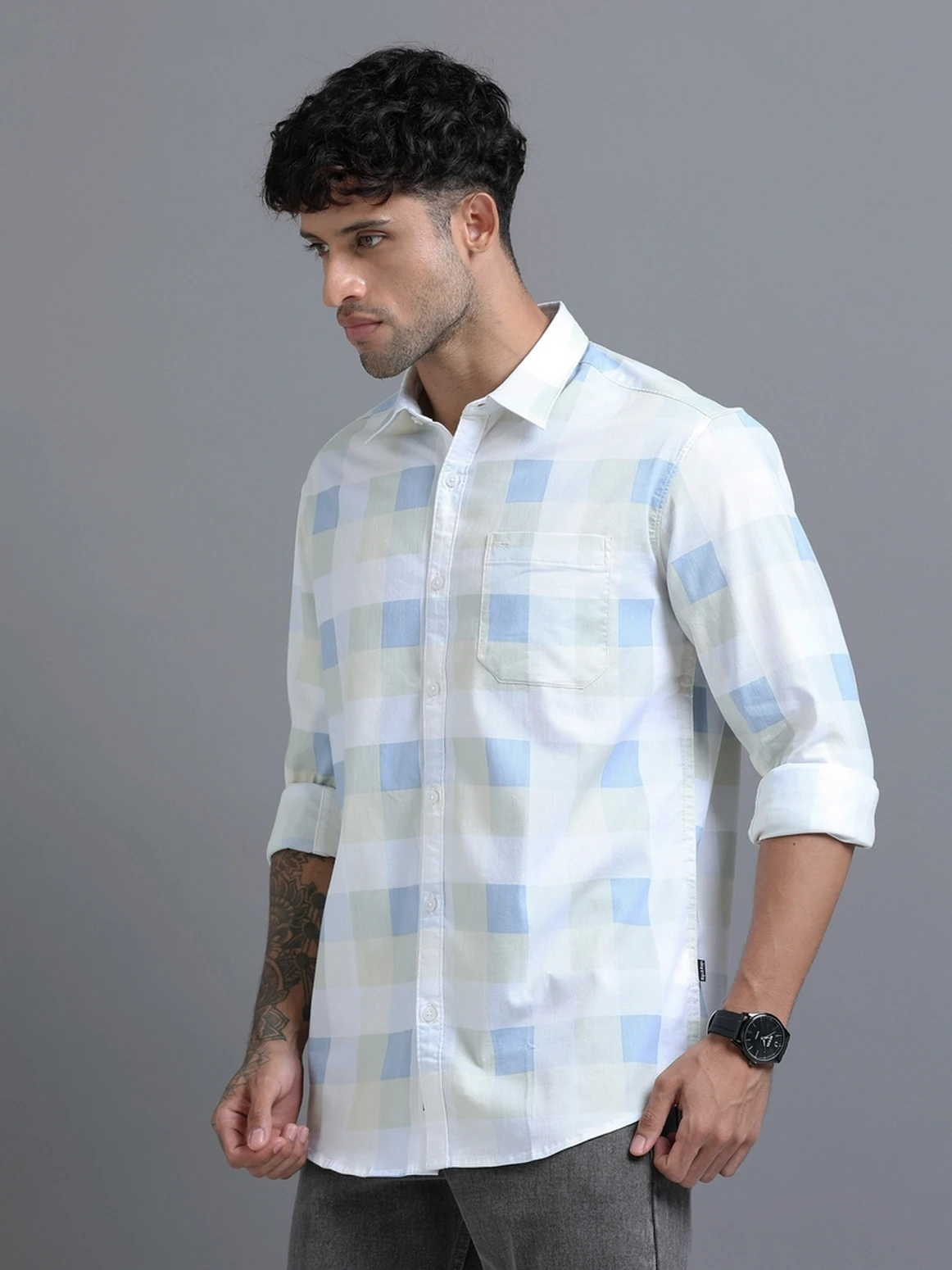 A modern twist on a classic, this cotton lycra checks shirt combines timeless patterns with stretchable comfort. The cotton base ensures breathability, while a hint of lycra offers flexibility for all-day ease. Perfect for smart-casual dressing