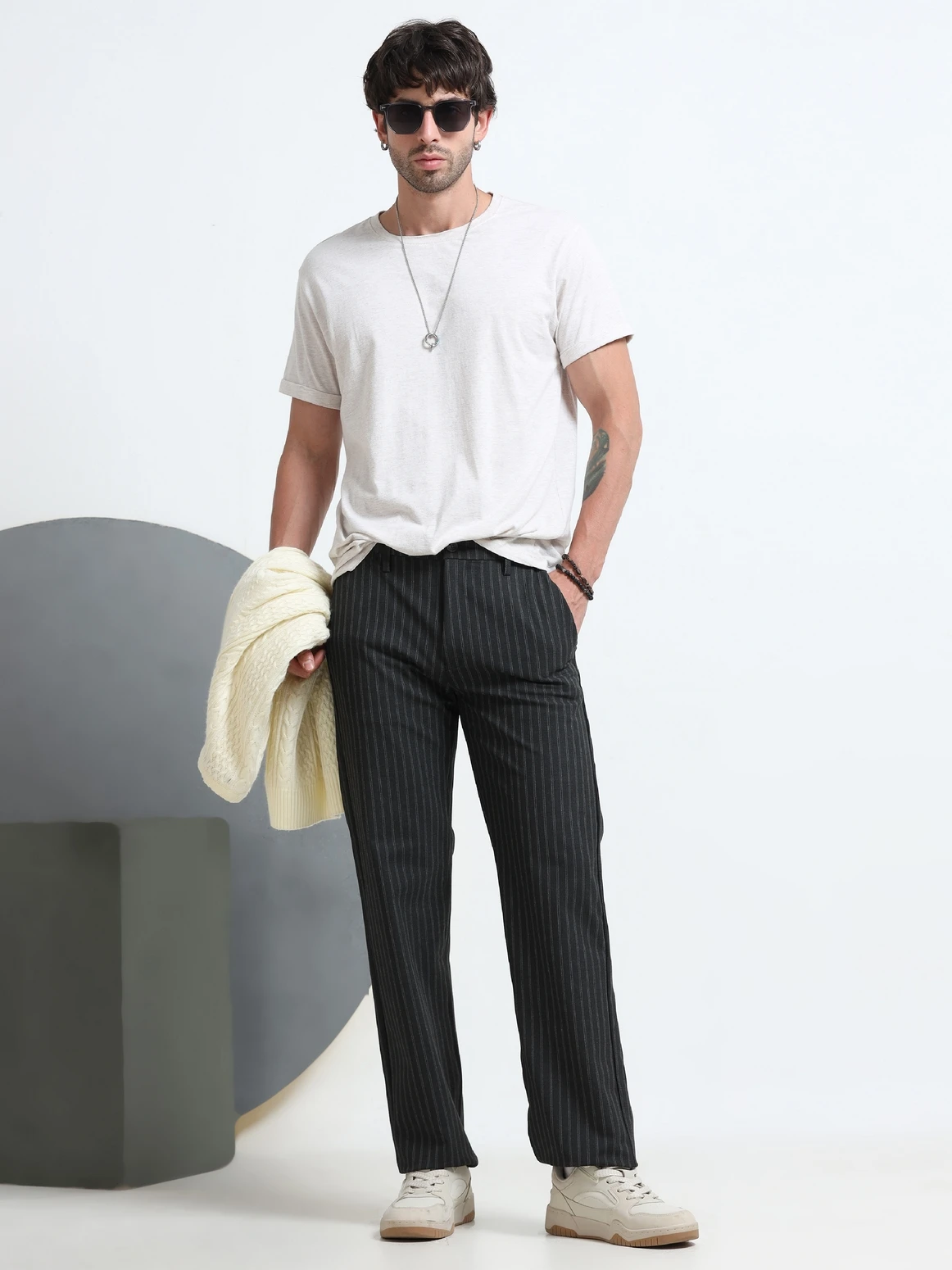 Men's Cotton Lycra Pinstripes Plain Formal Trouser