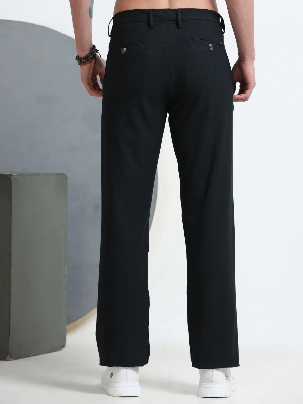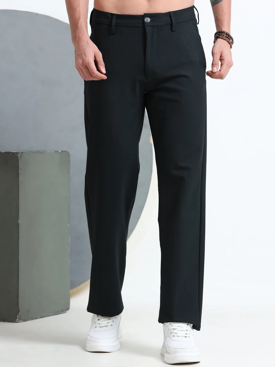 Men's Cotton Lycra Pinstripes Plain Formal Trouser