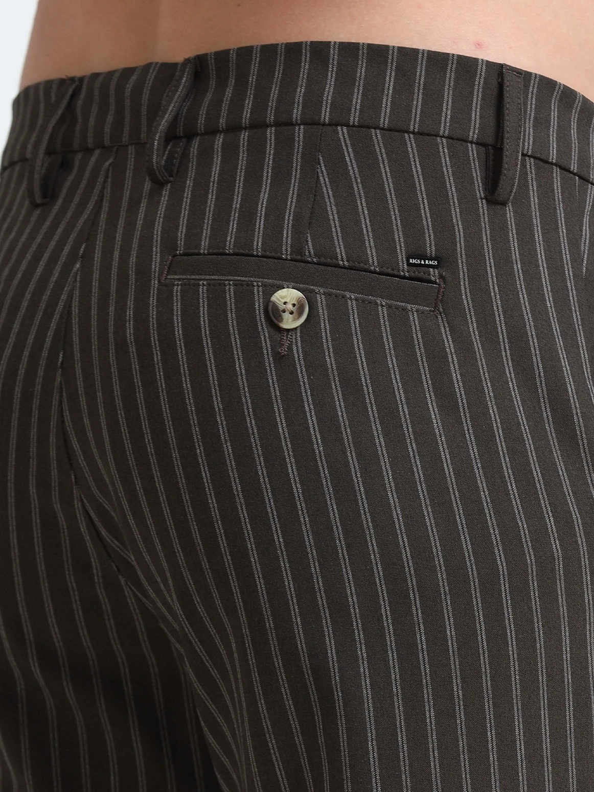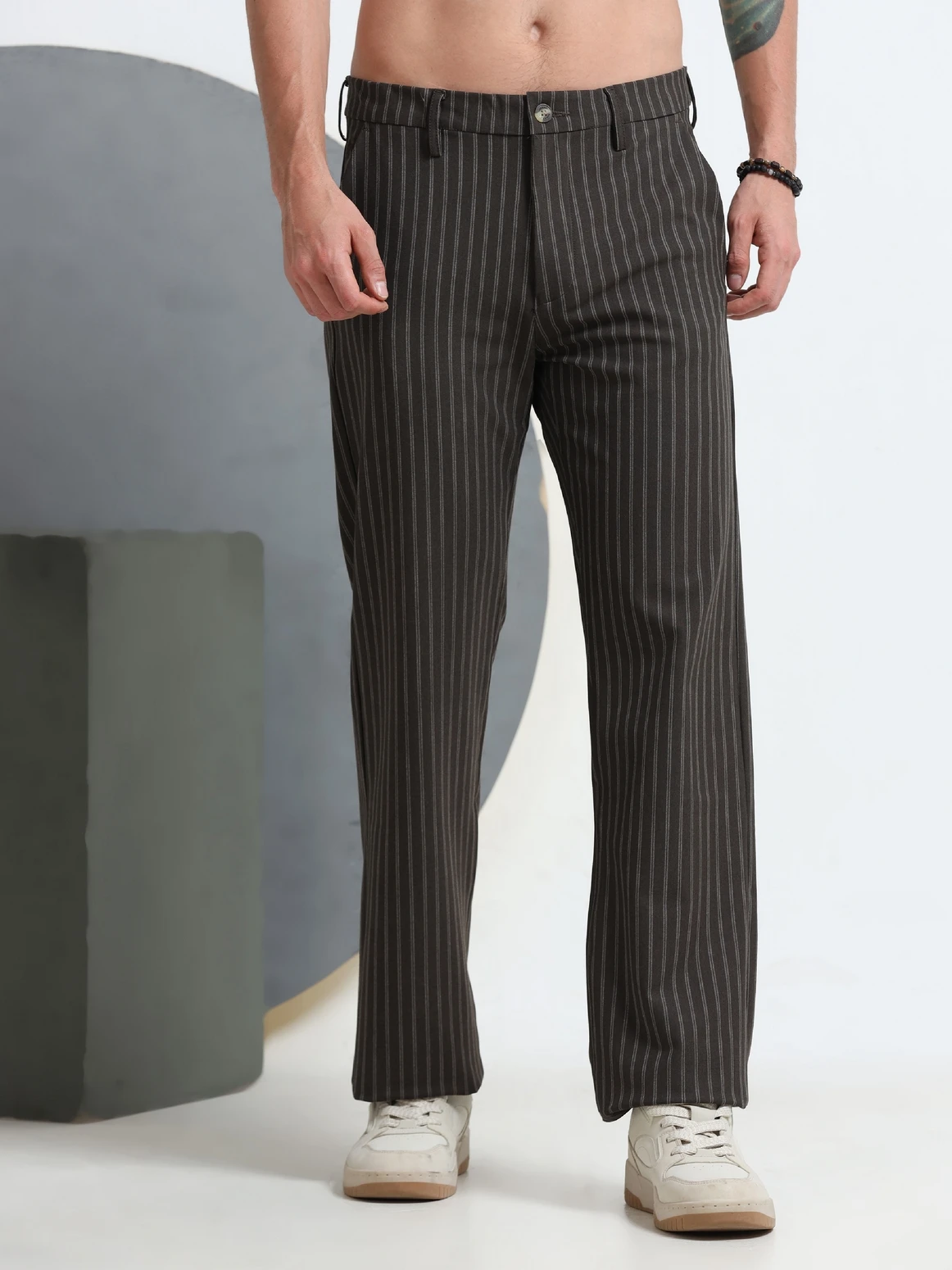 Men's Cotton Lycra Pinstripes Plain Formal Trouser