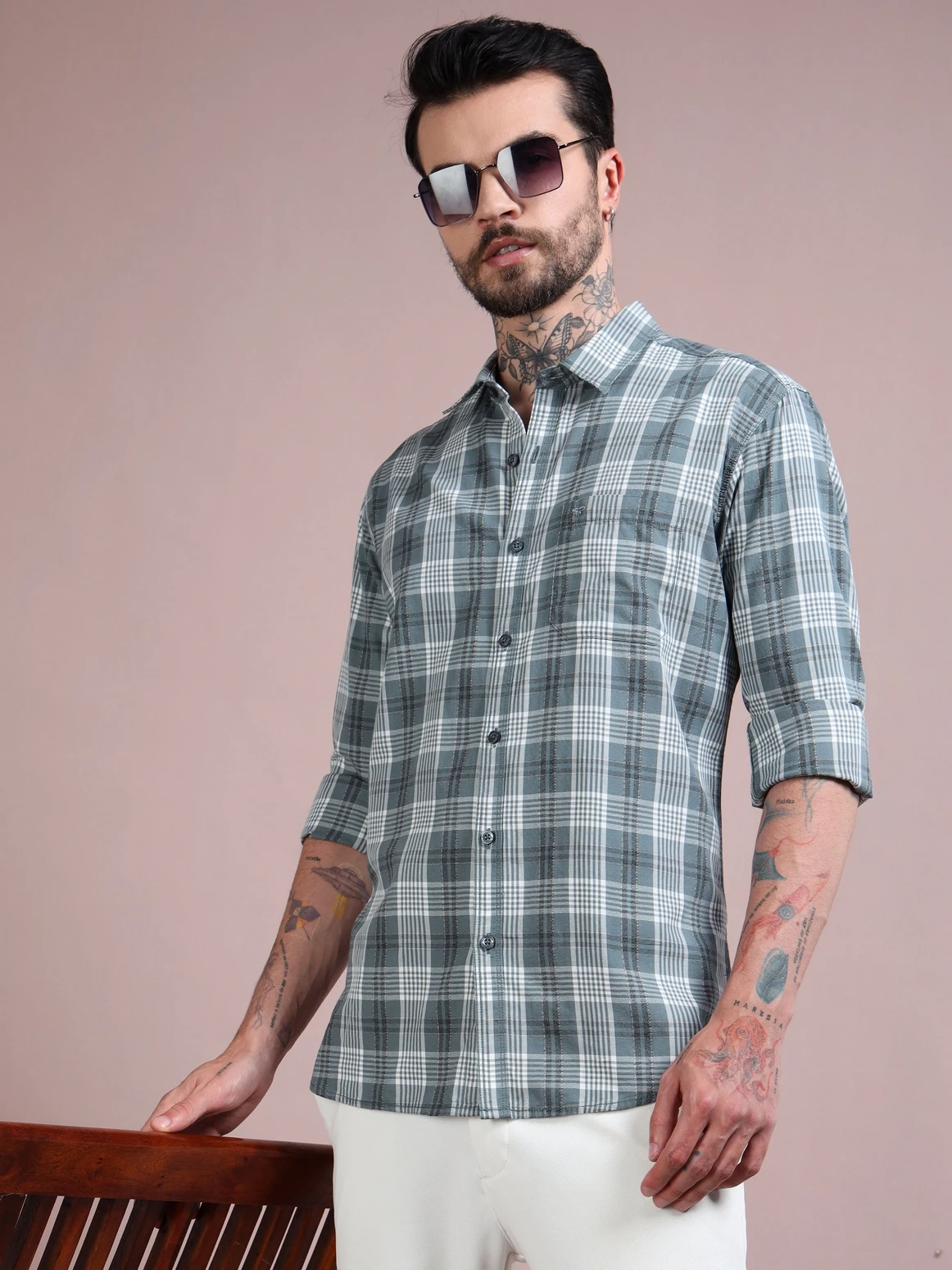 Keep your casual style effortless and comfortable with this Cotton Plain Weave Checked Shirt. Made from soft, breathable cotton in a plain weave structure, it features a timeless check pattern that brings a neat and versatile look. Designed with a regular fit and full sleeves, it’s perfect for both casual days and smart-casual occasions