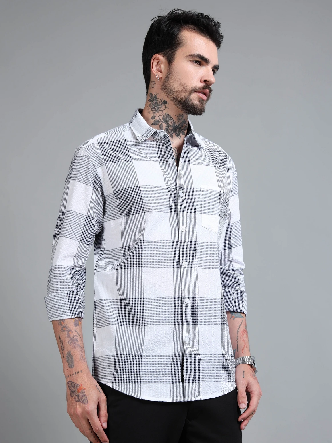 Men’s Cotton Textured Mini Checks Full Sleeves Shirt