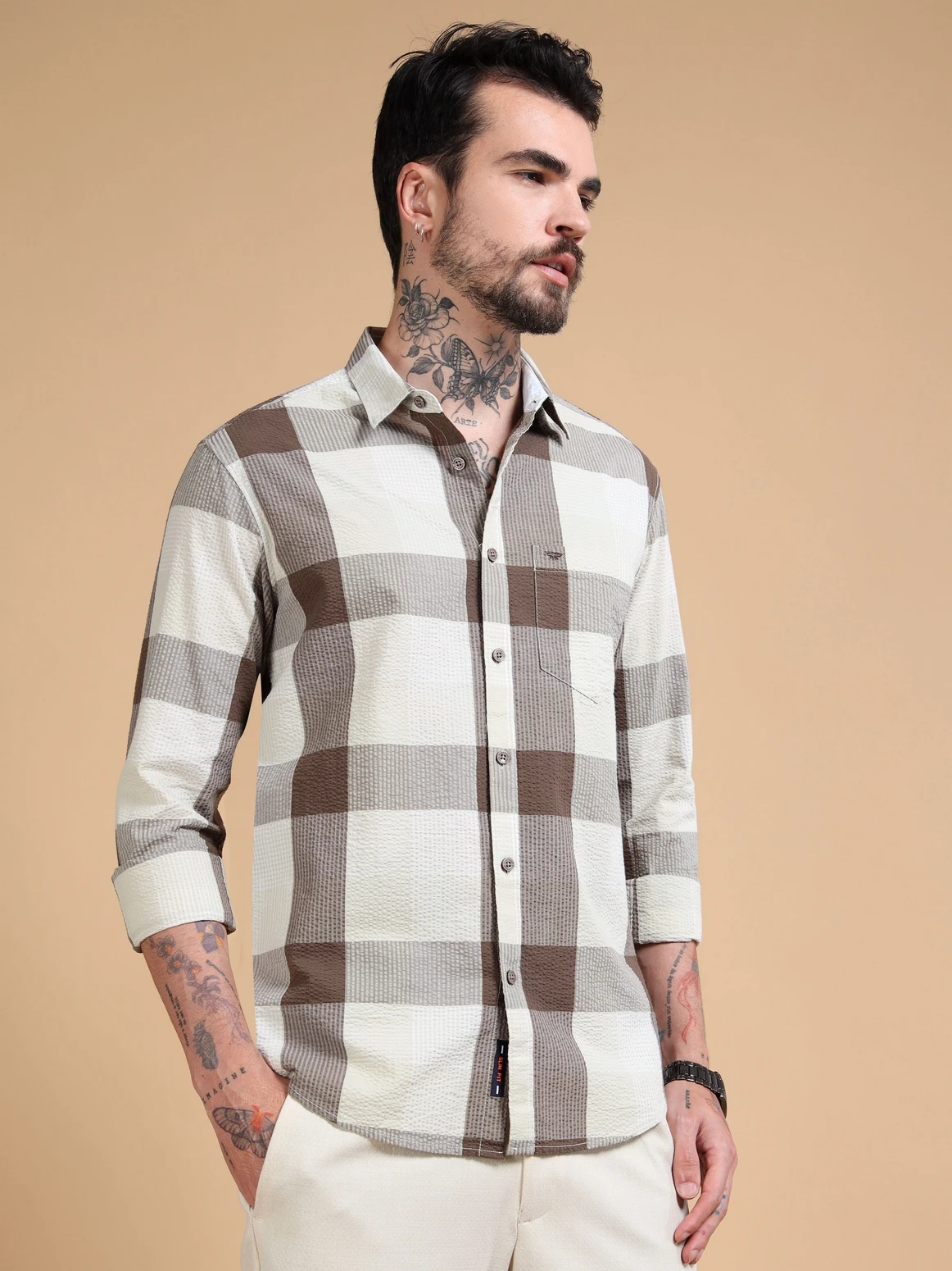 Men’s Cotton Textured Tartan Checks Full Sleeves Shirt