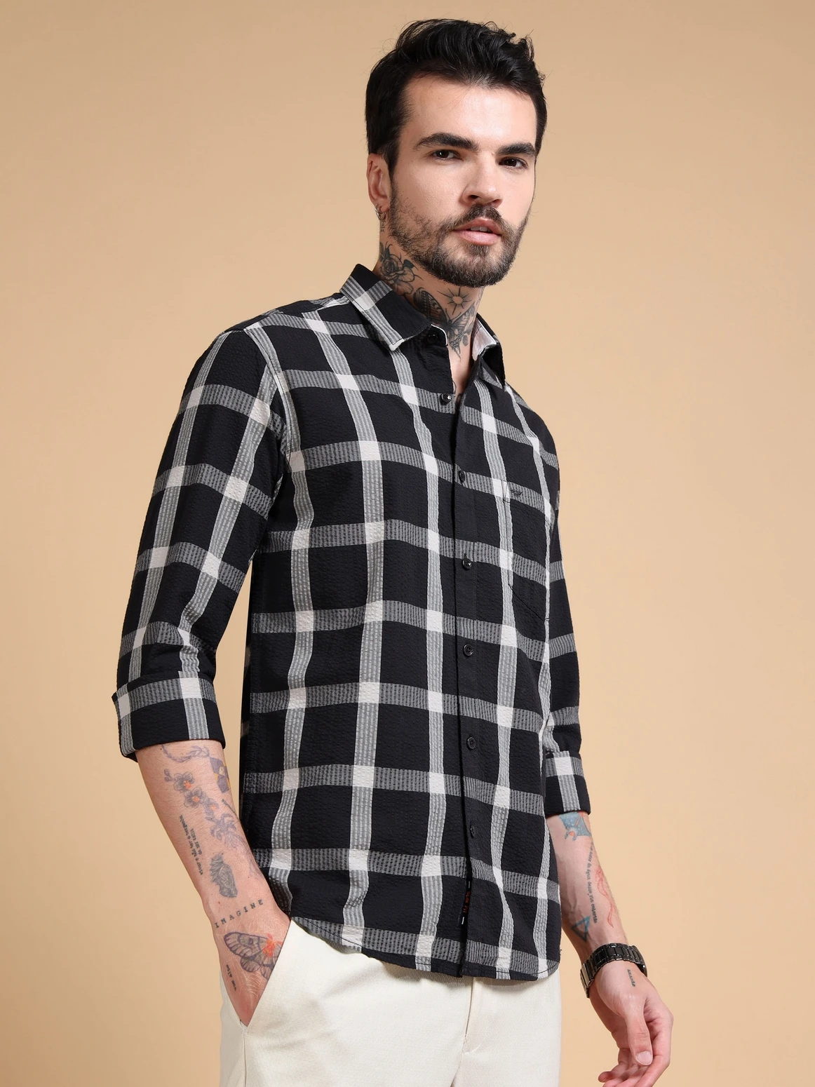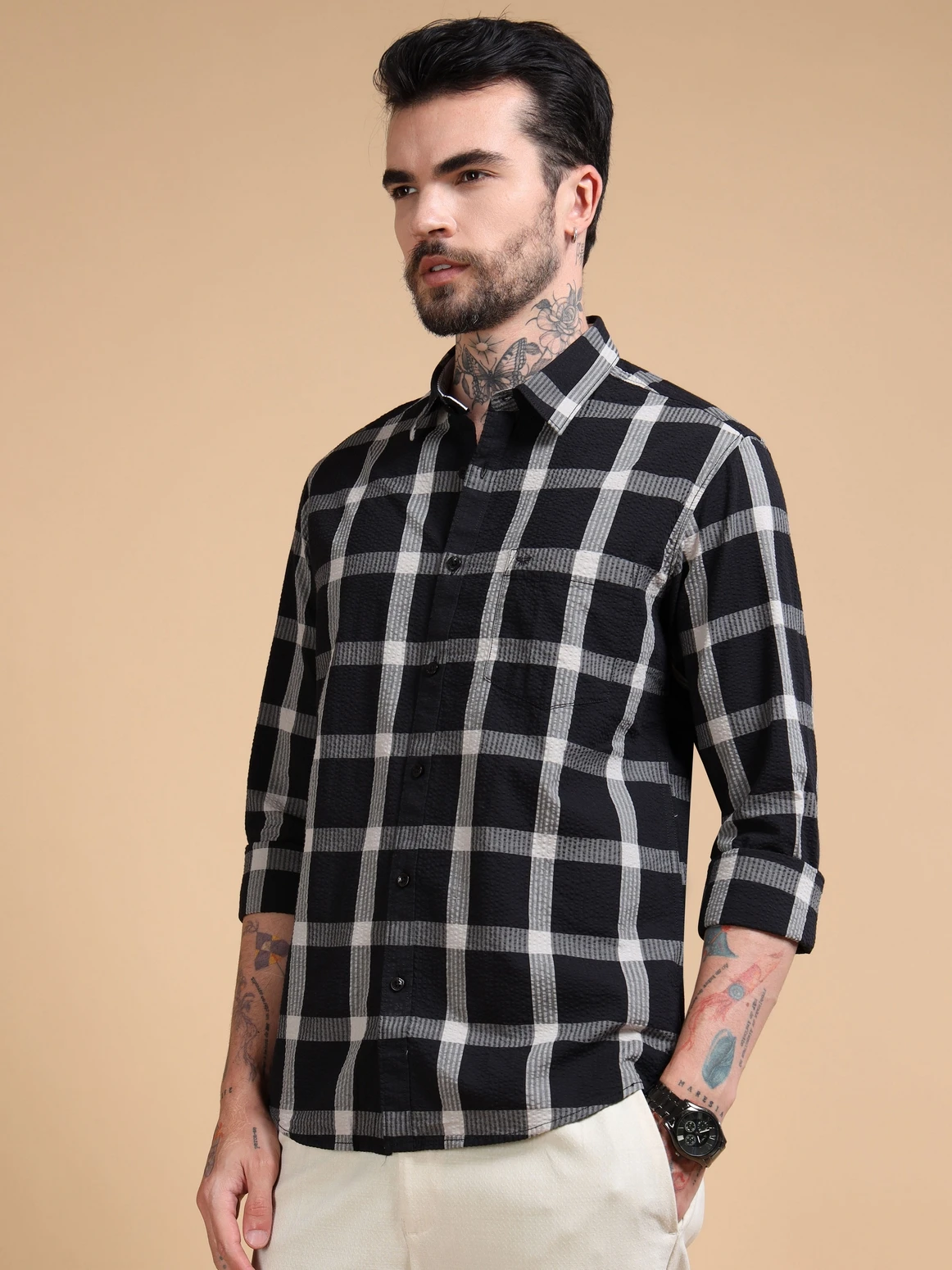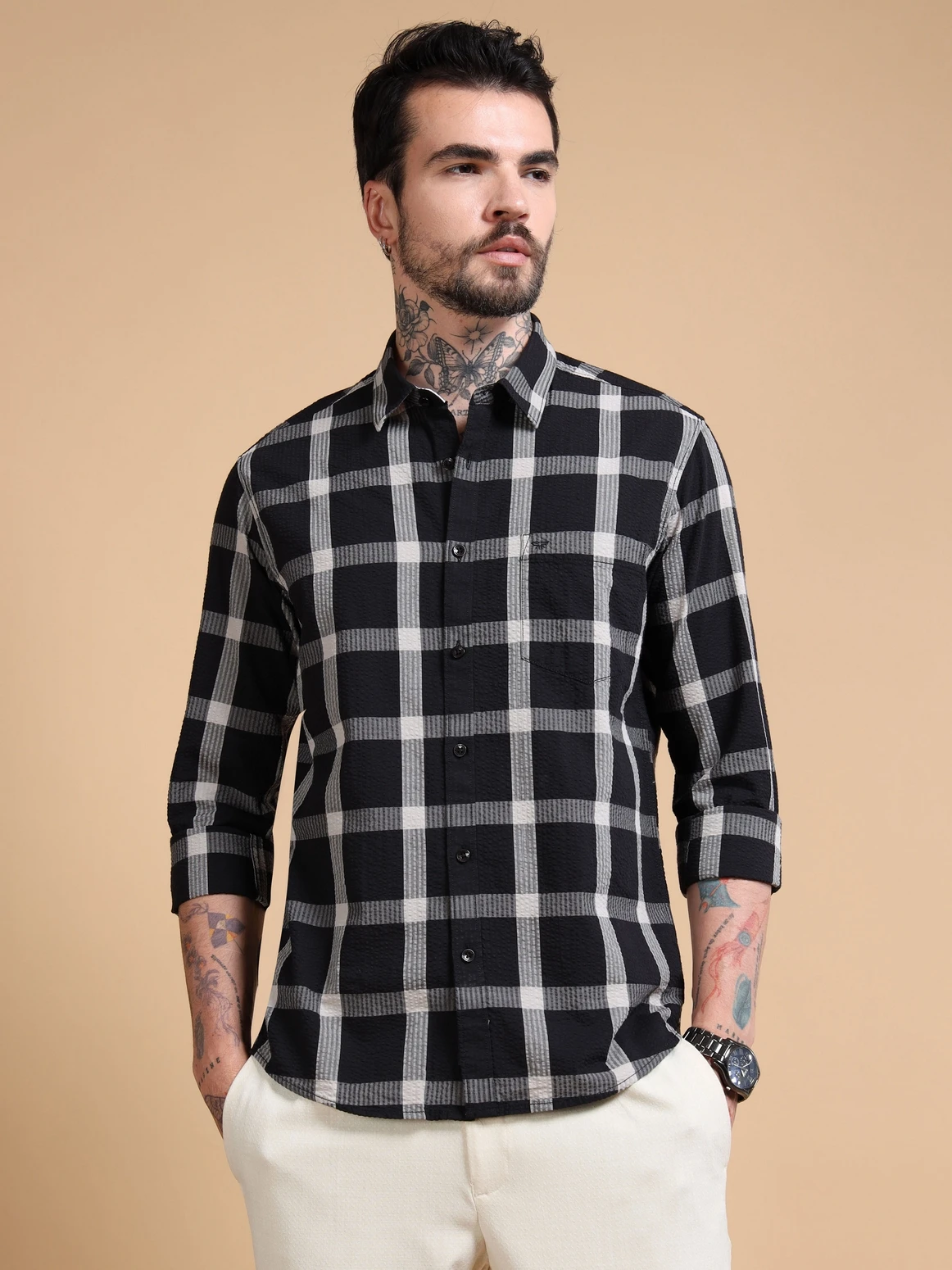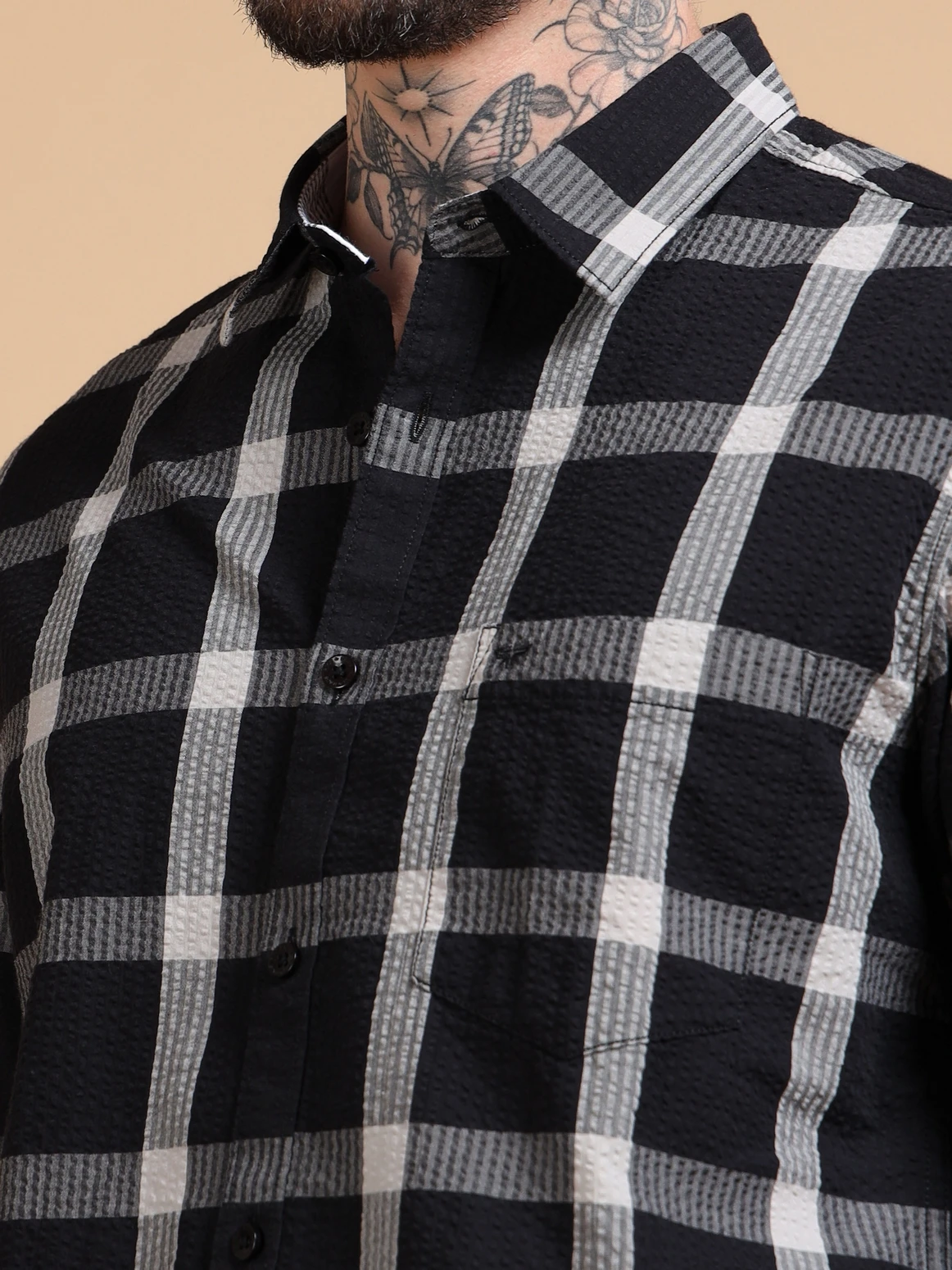 Men’s Cotton Textured Windowpane Checks Full Sleeves Shirt