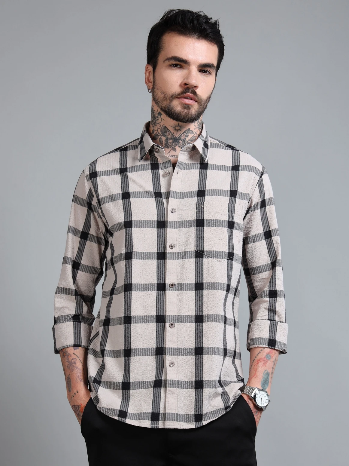 Men’s Cotton Textured Windowpane Checks Full Sleeves Shirt