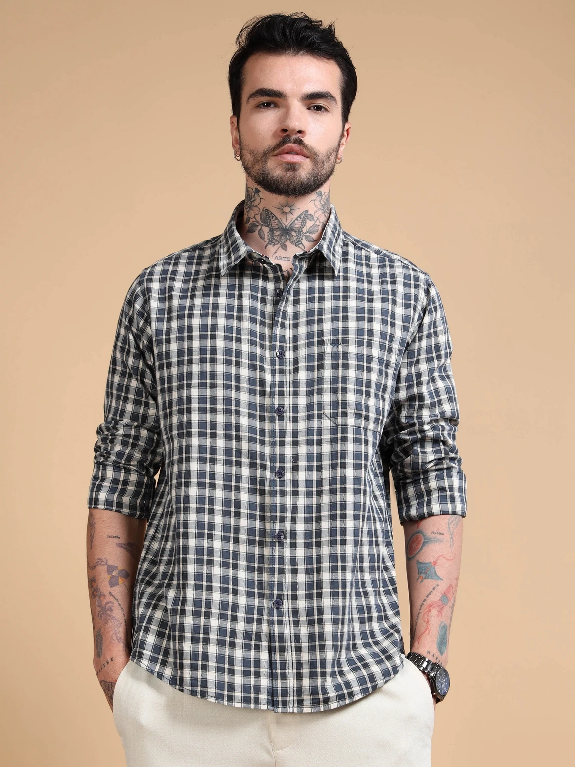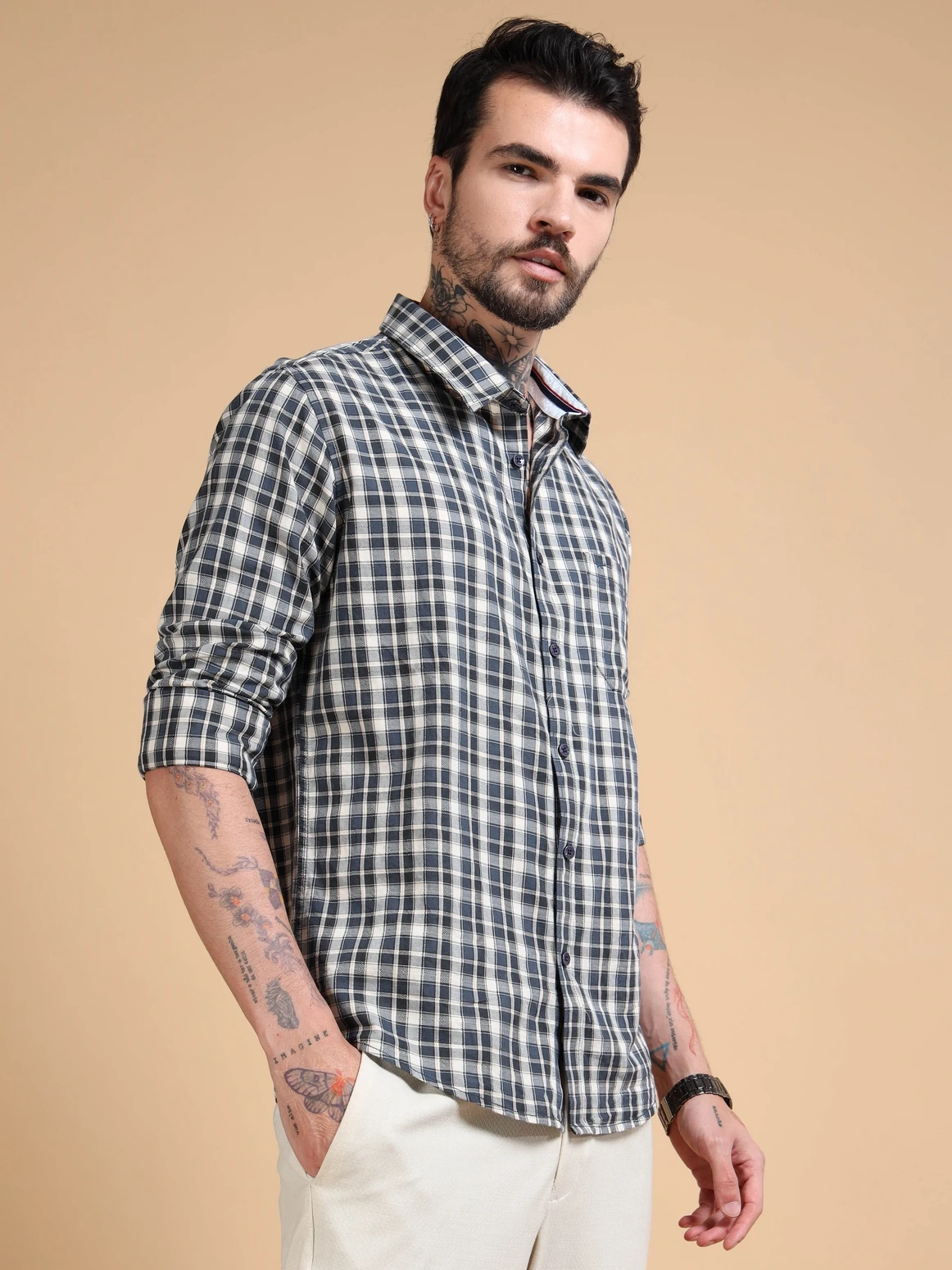 Men’s Dobby Cotton Tarton Checks Full Sleeves Shirt