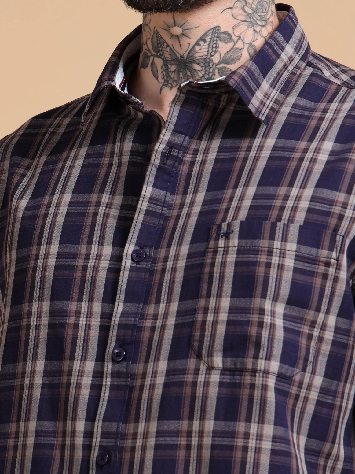 Upgrade your wardrobe with this dobby cotton checked shirt, crafted for both comfort and refined style. Made from soft, breathable cotton fabric, it features a subtle dobby weave that adds texture and depth to the classic check pattern. Designed in a regular fit with full sleeves, this shirt brings together timeless design and everyday versatility