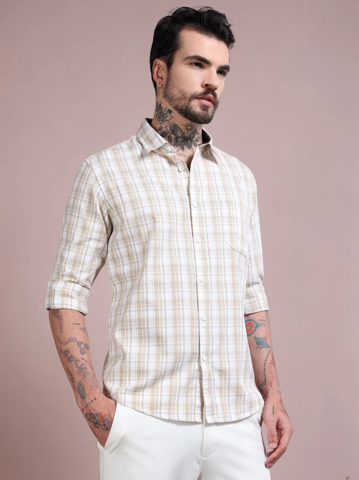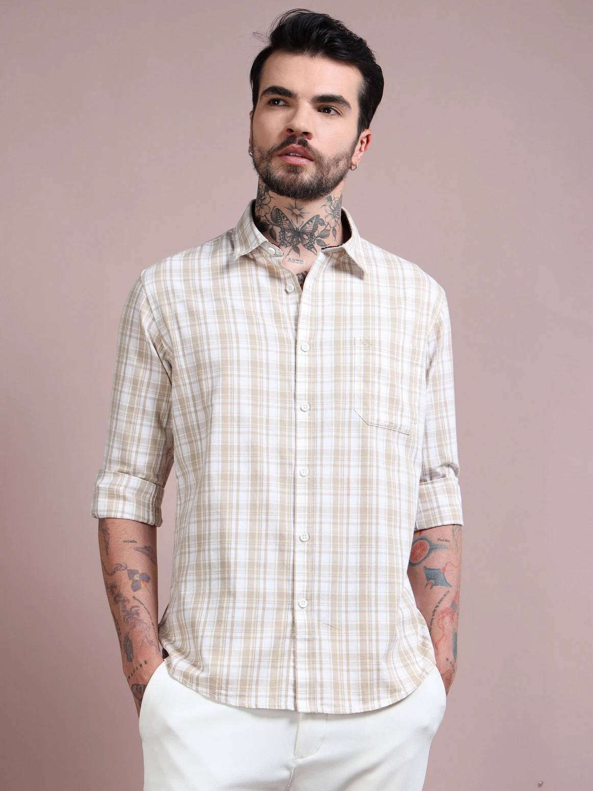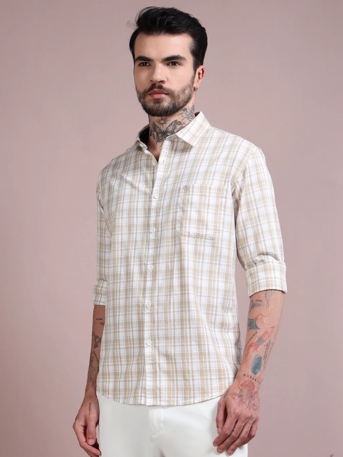 Upgrade your wardrobe with this dobby cotton checked shirt, crafted for both comfort and refined style. Made from soft, breathable cotton fabric, it features a subtle dobby weave that adds texture and depth to the classic check pattern. Designed in a regular fit with full sleeves, this shirt brings together timeless design and everyday versatility