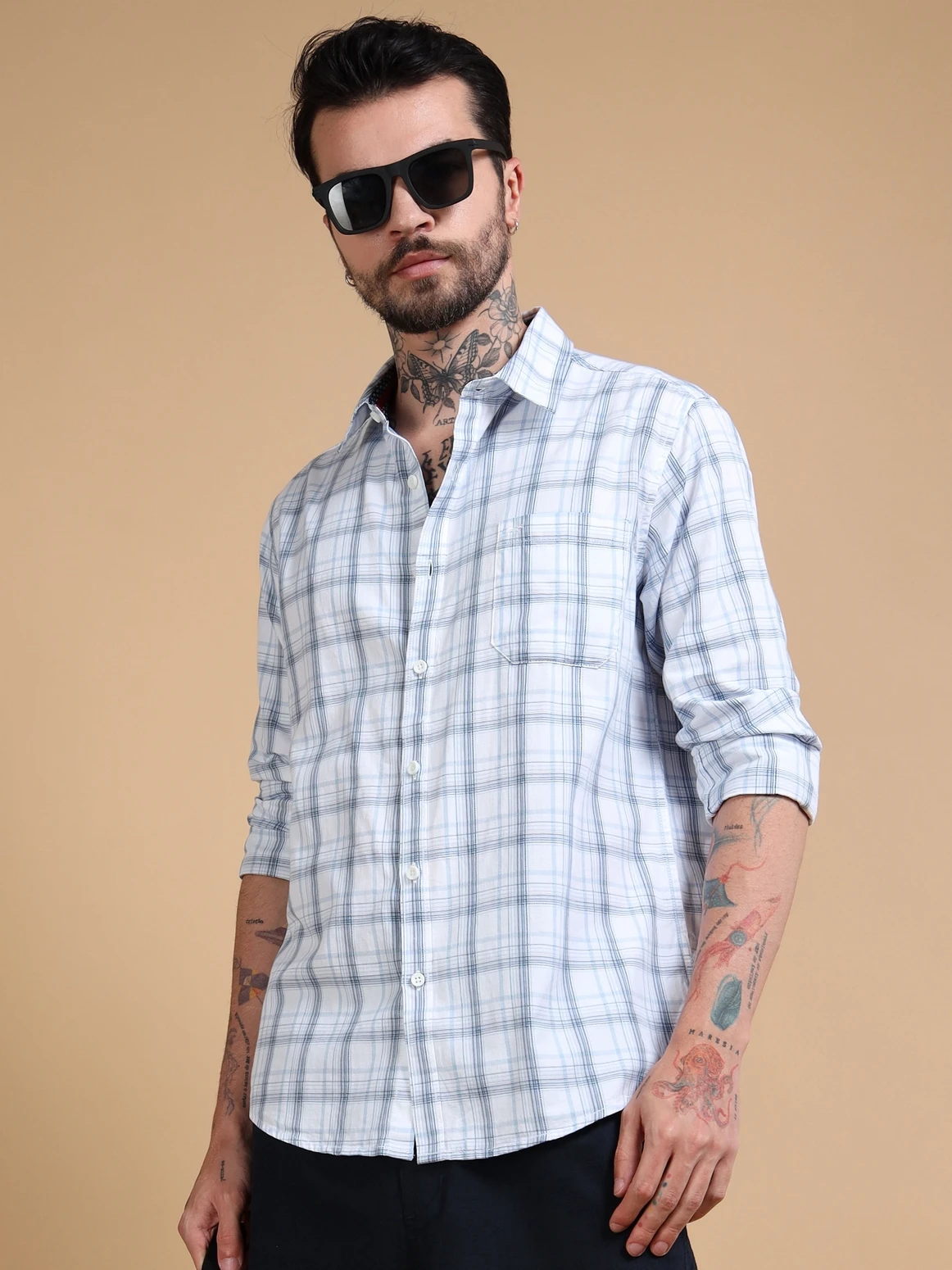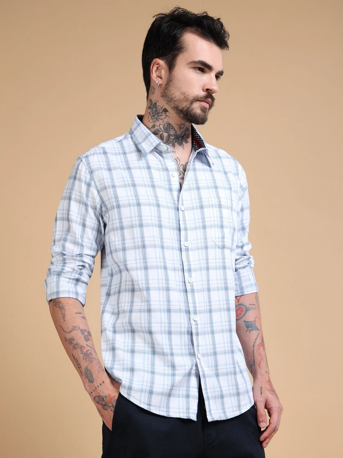 Upgrade your wardrobe with this dobby cotton checked shirt, crafted for both comfort and refined style. Made from soft, breathable cotton fabric, it features a subtle dobby weave that adds texture and depth to the classic check pattern. Designed in a regular fit with full sleeves, this shirt brings together timeless design and everyday versatility