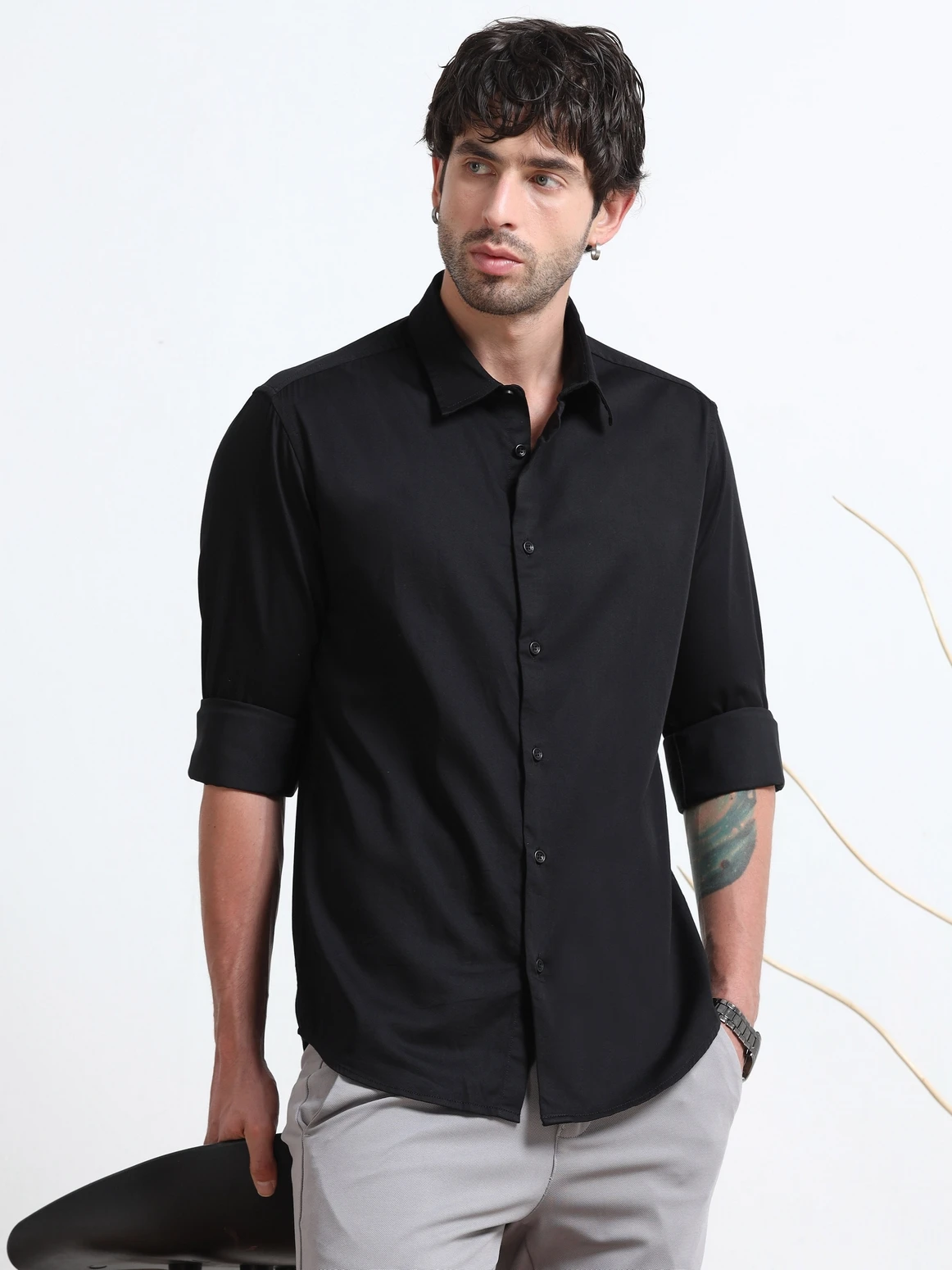 Upgrade your wardrobe with this cotton satin lycra shirt, designed to offer a smooth satin finish with the comfort of cotton and the flexibility of lycra. The soft sheen adds a refined touch, while the stretch fabric ensures ease of movement. Perfect for both smart-casual and evening wear styling.