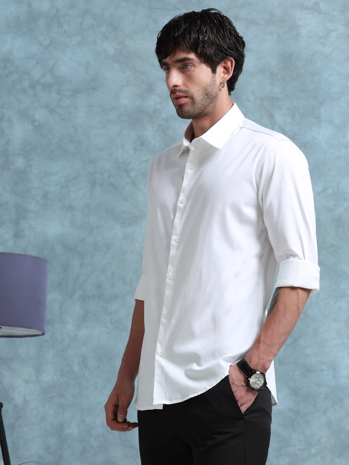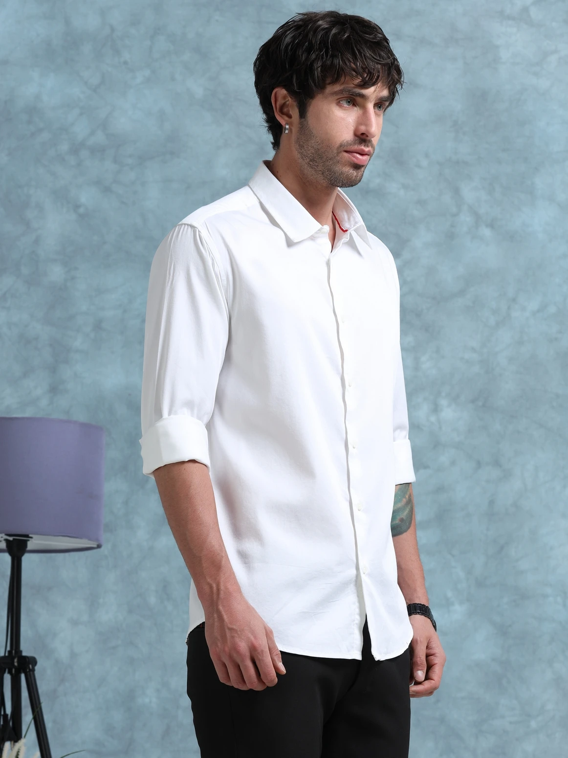 Upgrade your wardrobe with this cotton satin lycra shirt, designed to offer a smooth satin finish with the comfort of cotton and the flexibility of lycra. The soft sheen adds a refined touch, while the stretch fabric ensures ease of movement. Perfect for both smart-casual and evening wear styling.