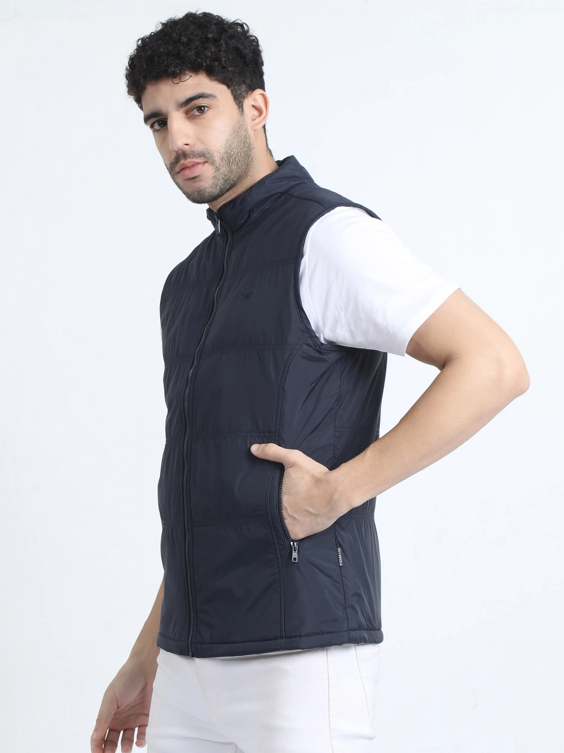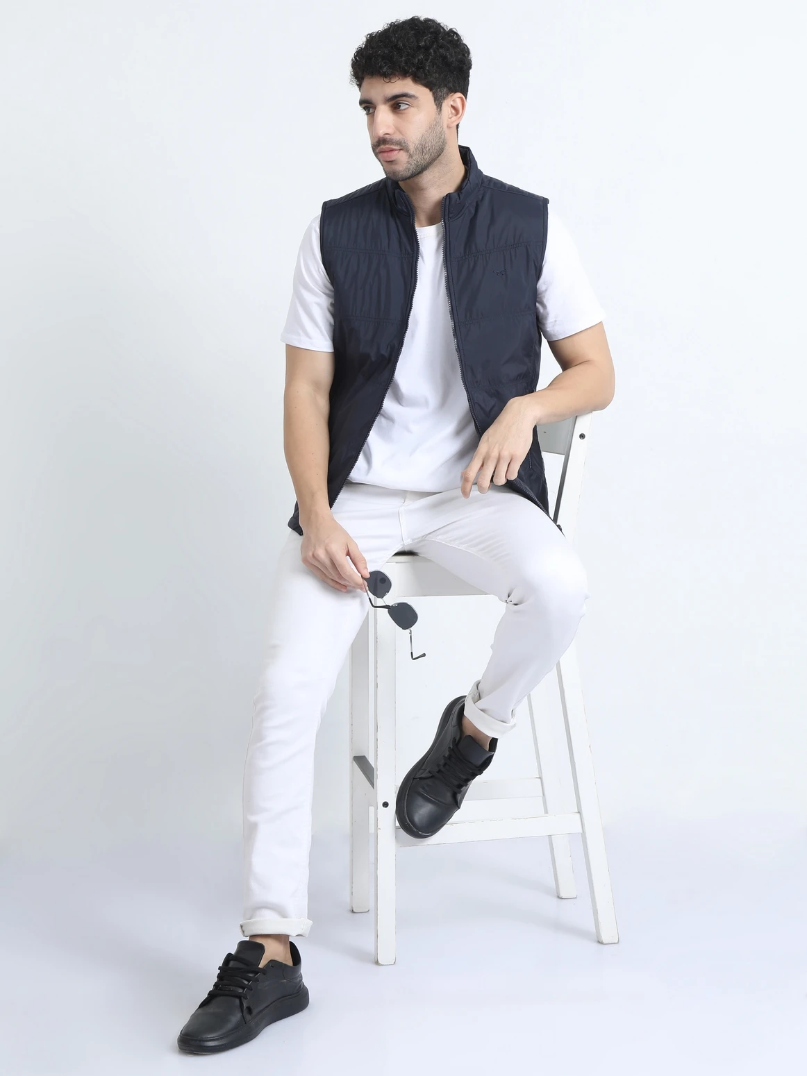 Redefine layering with this sleeveless bomber jacket, crafted from lightweight yet structured fabric. The clean design and ribbed accents give it a sporty-cool look — perfect for elevating casual fits or adding a twist to your streetwear staples.