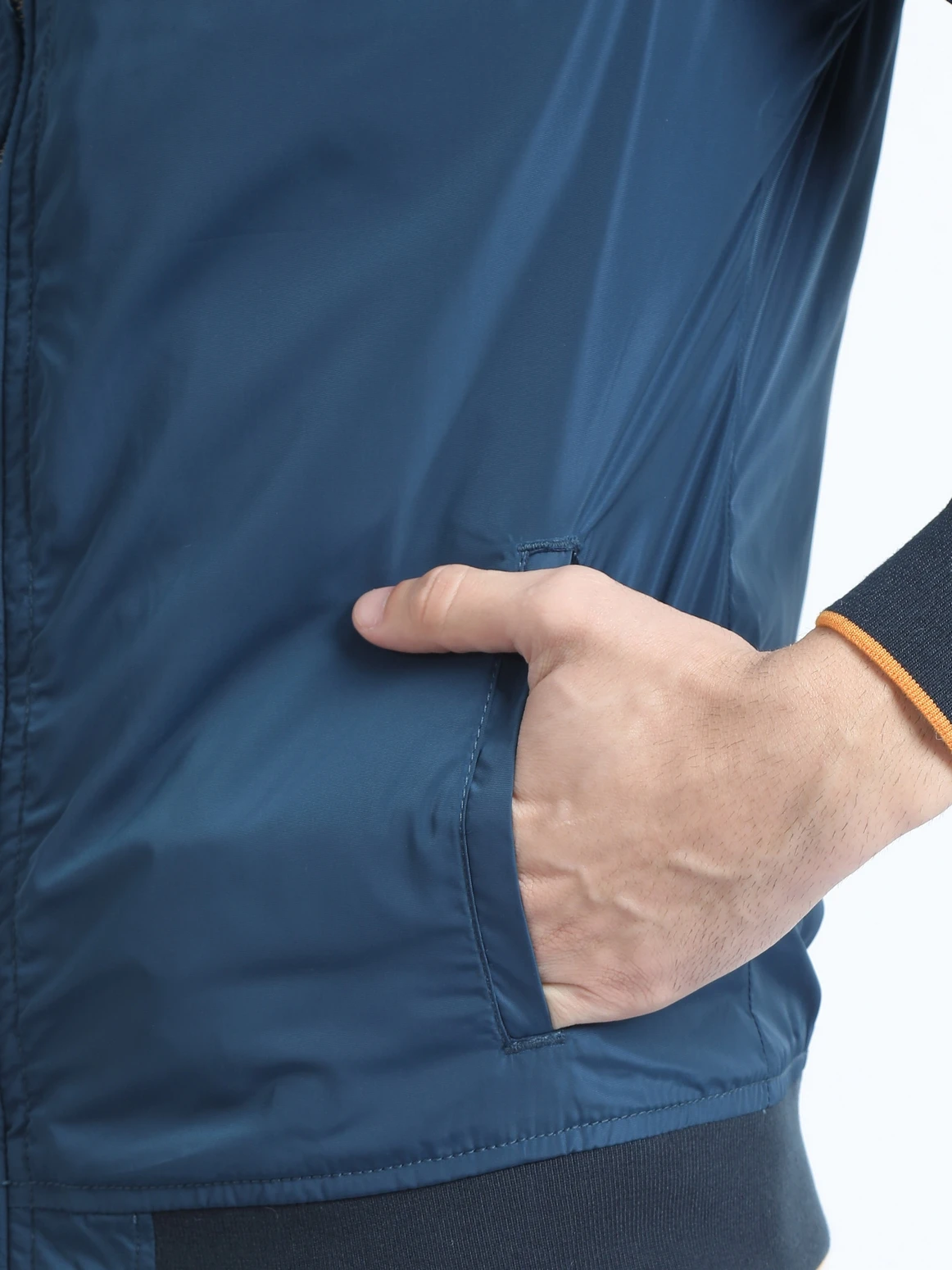 Redefine layering with this sleeveless bomber jacket, crafted from lightweight yet structured fabric. The clean design and ribbed accents give it a sporty-cool look — perfect for elevating casual fits or adding a twist to your streetwear staples.
