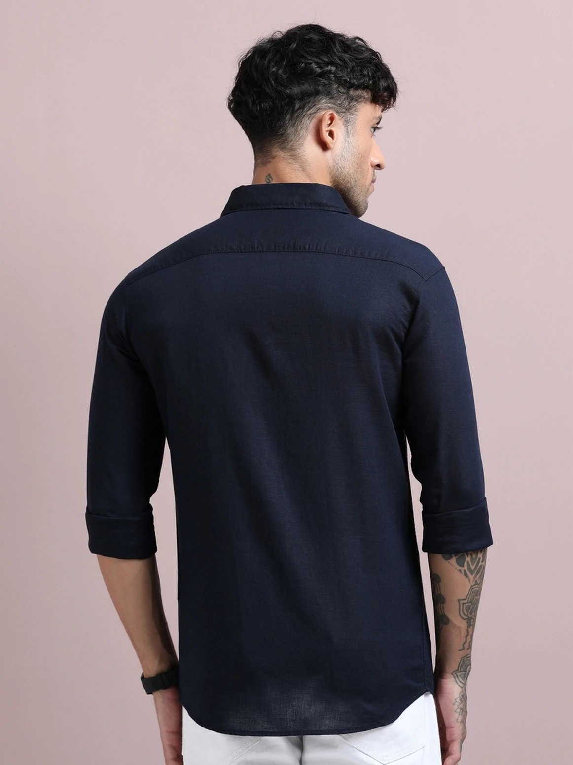 Crafted from a breathable blend of pure cotton and linen, this shirt offers natural comfort with a touch of sophistication. The full sleeves add versatility, making it suitable for both casual and semi-formal looks.