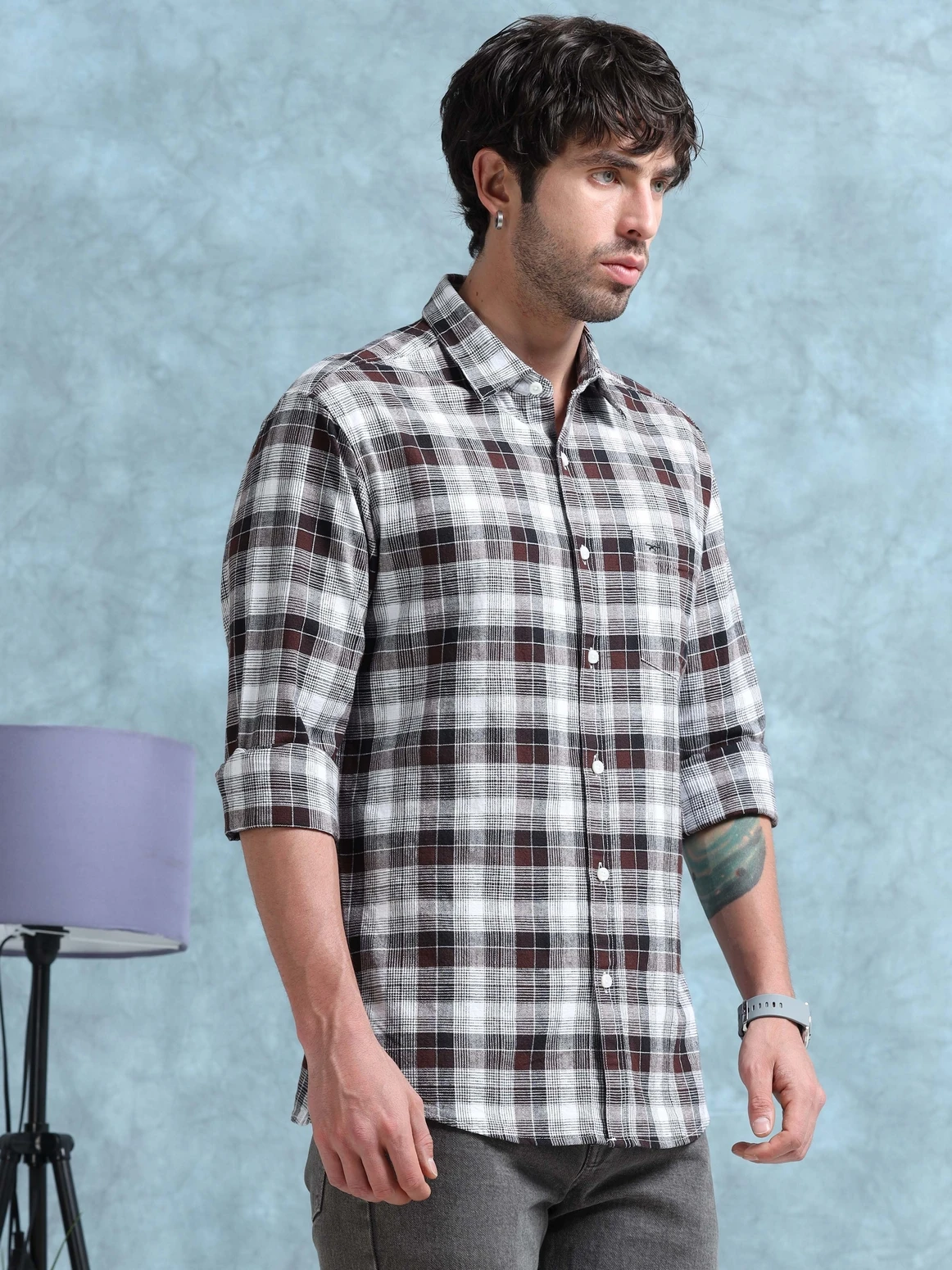 Add a timeless classic to your wardrobe with this cotton tartan checks shirt. Crafted from soft, breathable cotton, it features heritage-inspired tartan patterns that bring a refined yet rugged appeal. Designed with full sleeves and a comfortable regular fit, this shirt transitions effortlessly from casual to smart-casual occasions.