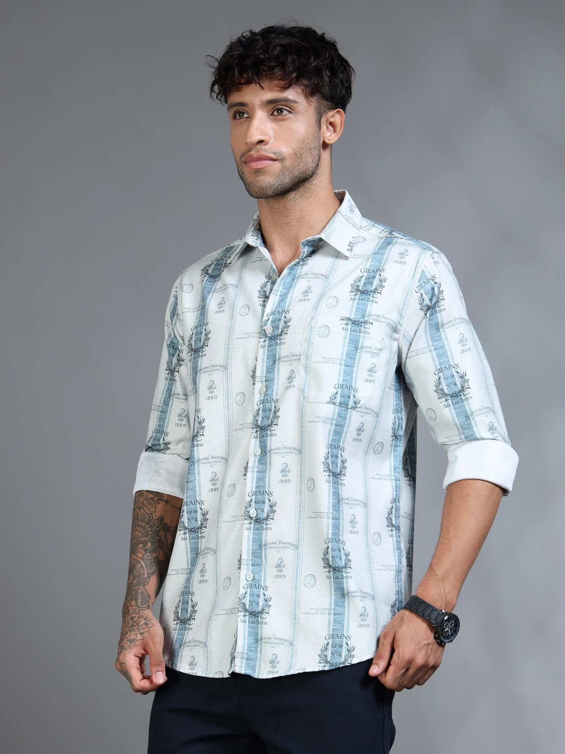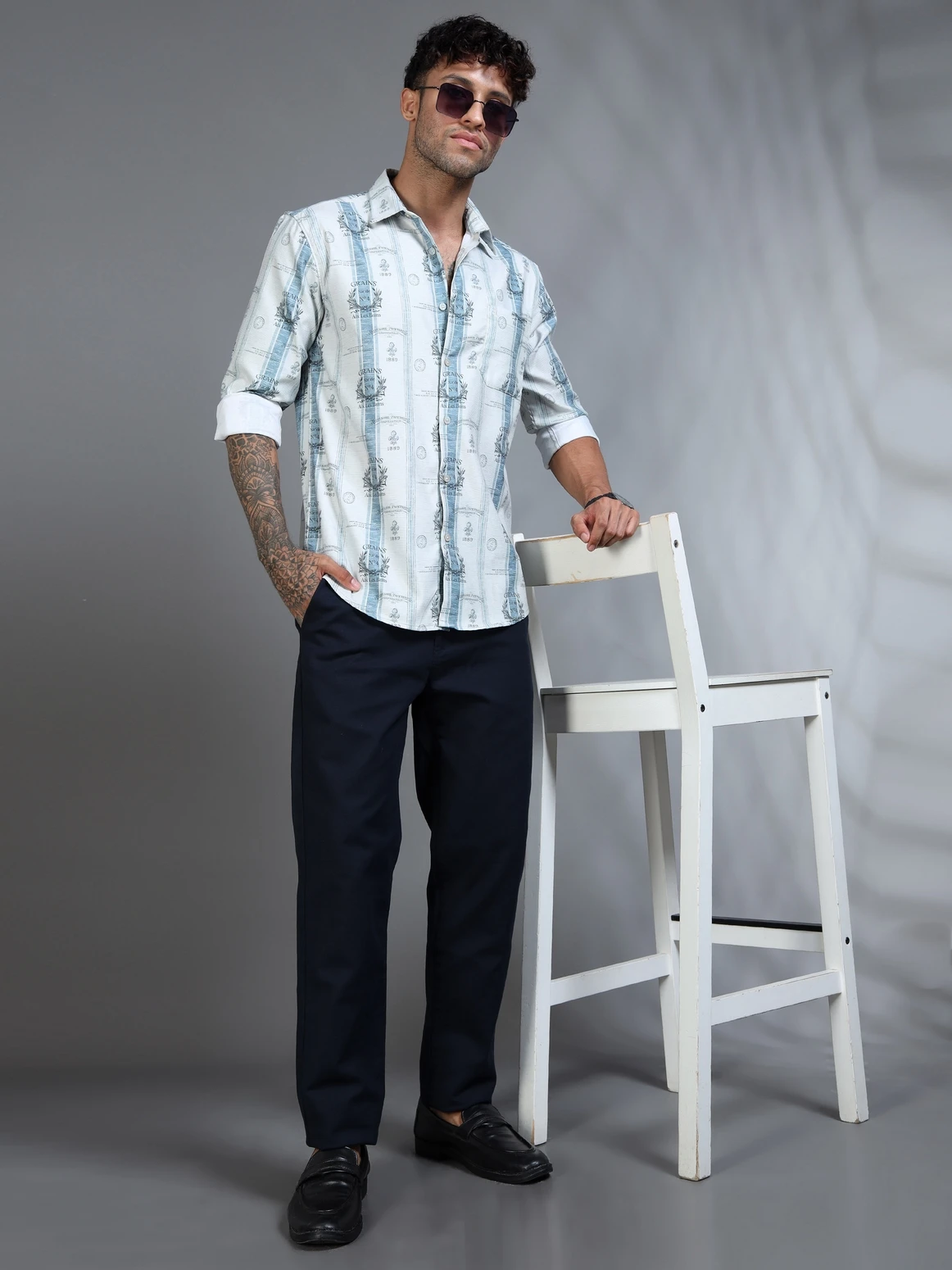 Step up your casual style with this cotton blend self-design print striped shirt. Crafted from premium cotton blend fabric, it combines the elegance of self-texture with a modern striped print. The soft, breathable fabric ensures comfort throughout the day, while the full sleeves and regular fit offer a polished yet easygoing look — perfect for workdays or outings
