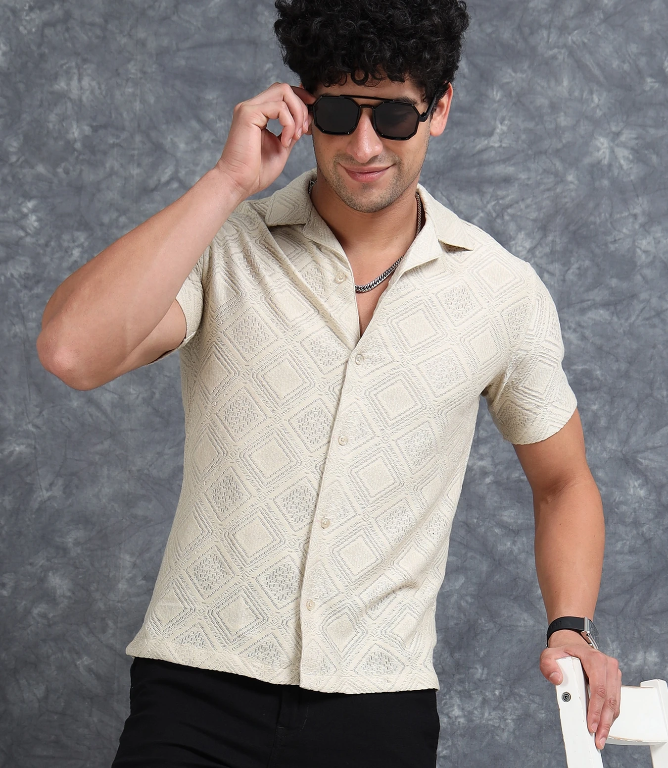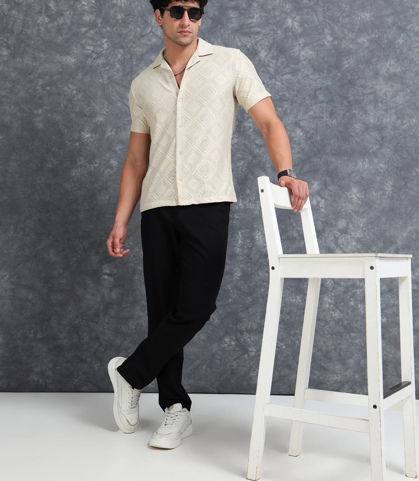 Step up your fashion game with this Self Design Sheer Straight Fit Half Sleeves Shirt, made from a lightweight textured sheer fabric. The straight fit provides a clean, relaxed drape, while the subtle self-design patterns add depth and sophistication. Perfect for stylish summer looks, parties, or effortless evening wear