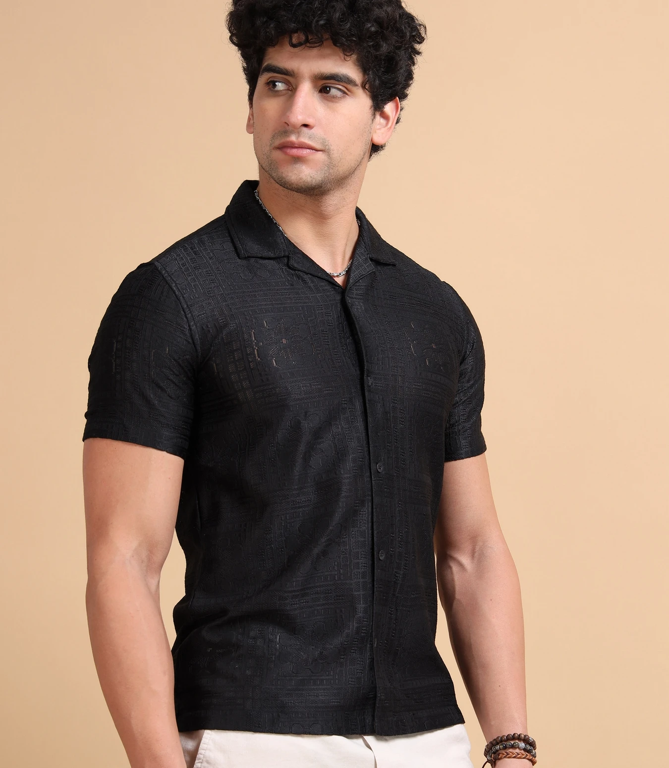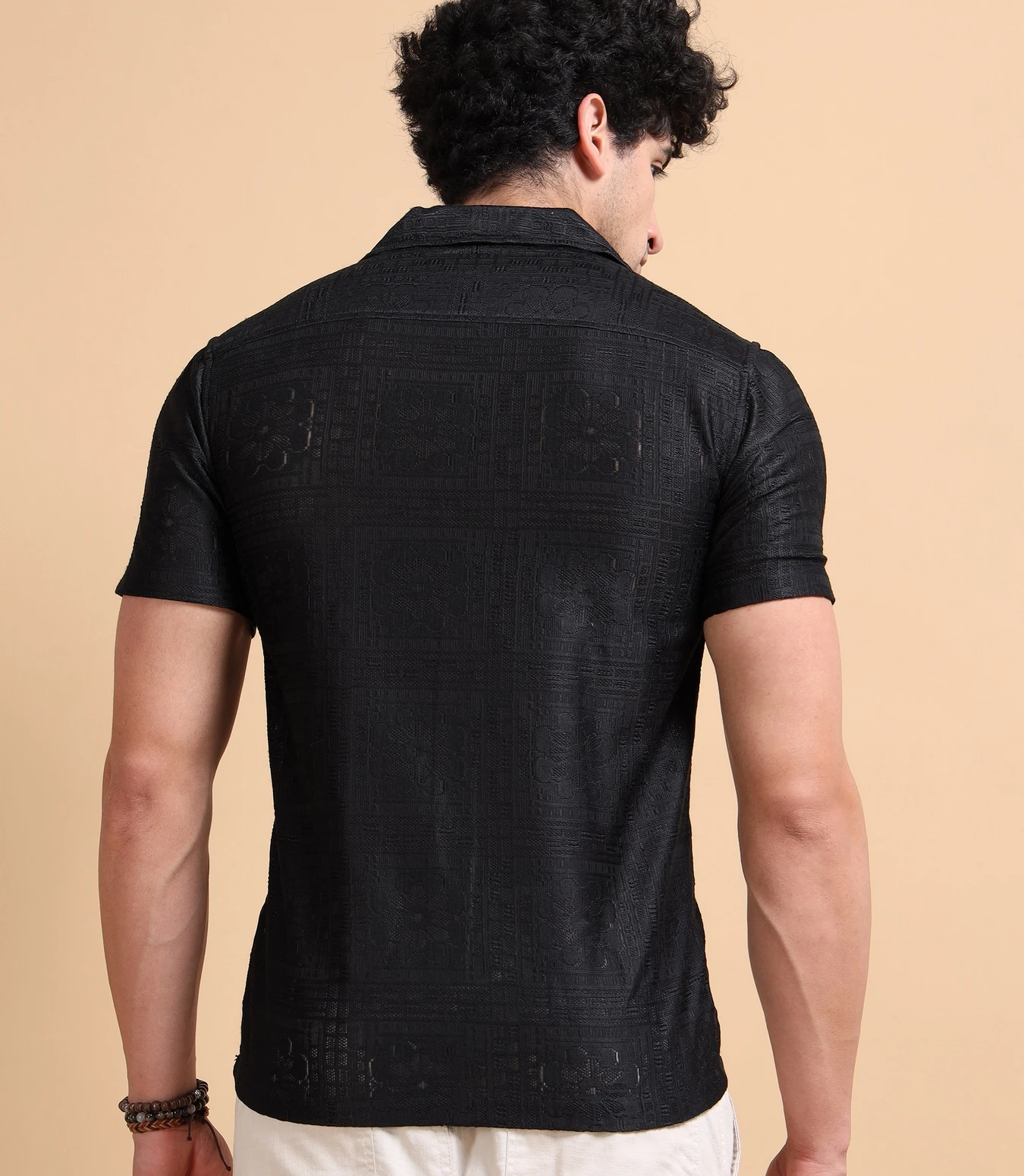Step up your fashion game with this Self Design Sheer Straight Fit Half Sleeves Shirt, made from a lightweight textured sheer fabric. The straight fit provides a clean, relaxed drape, while the subtle self-design patterns add depth and sophistication. Perfect for stylish summer looks, parties, or effortless evening wear