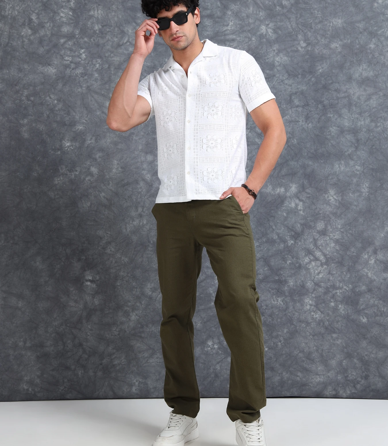 Step up your fashion game with this Self Design Sheer Straight Fit Half Sleeves Shirt, made from a lightweight textured sheer fabric. The straight fit provides a clean, relaxed drape, while the subtle self-design patterns add depth and sophistication. Perfect for stylish summer looks, parties, or effortless evening wear