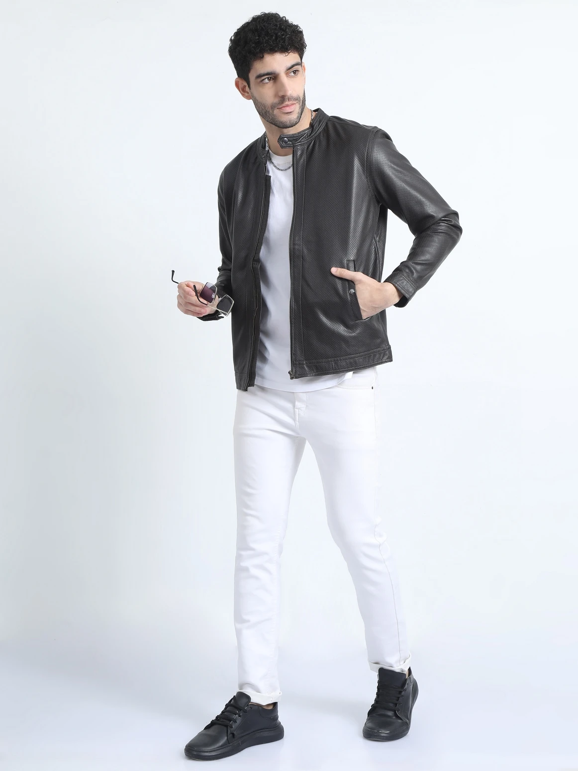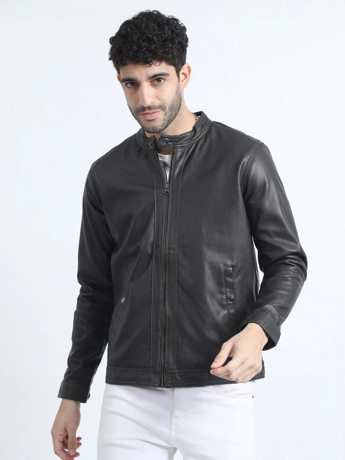 Channel bold attitude with this biker jacket, featuring sharp cuts and moto-inspired detailing. Made from durable faux leather for a rugged yet refined feel, it’s your go-to piece for an edgy, street-ready vibe with timeless appeal.
