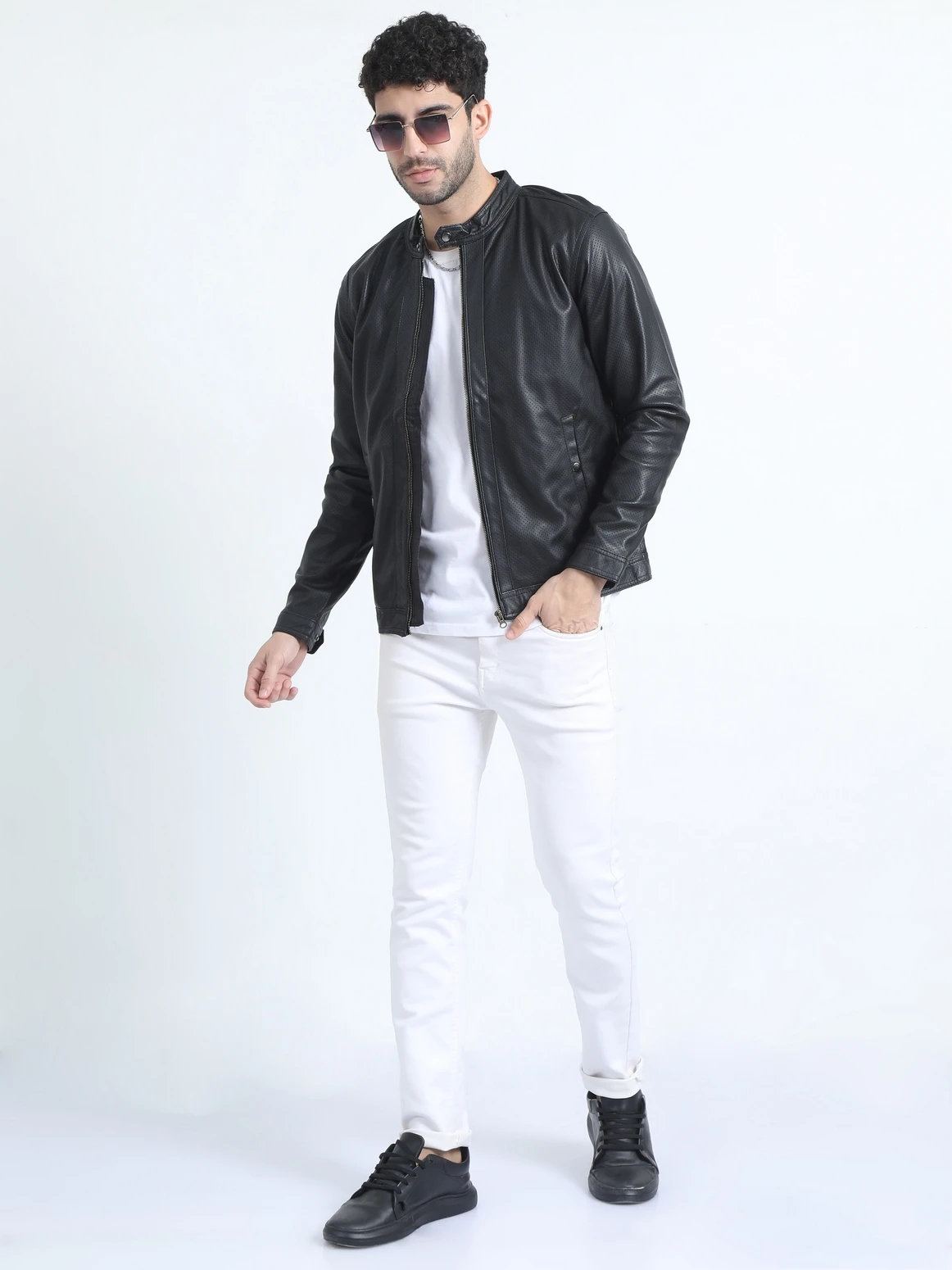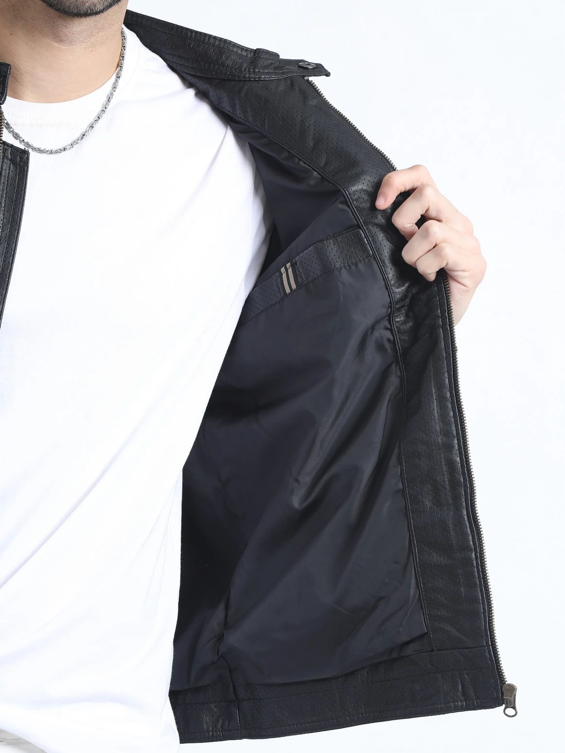 Channel bold attitude with this biker jacket, featuring sharp cuts and moto-inspired detailing. Made from durable faux leather for a rugged yet refined feel, it’s your go-to piece for an edgy, street-ready vibe with timeless appeal.
