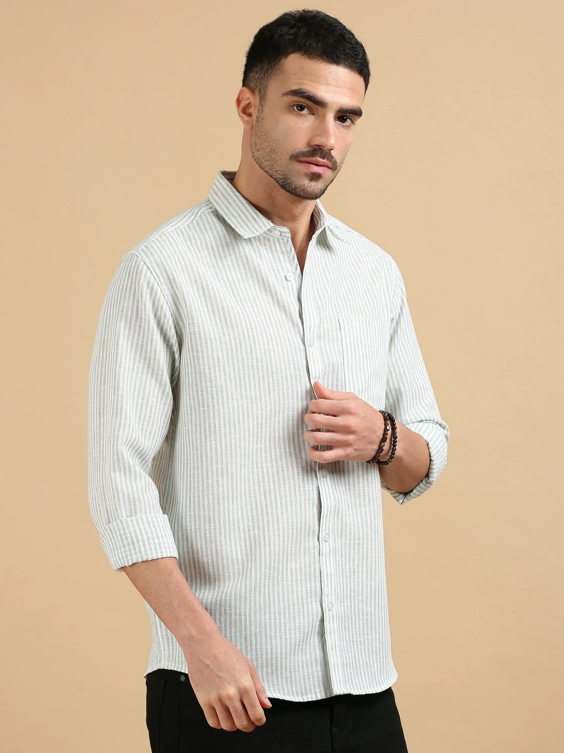 Men’s Slub Cotton Medium Stripes Full Sleeve Shirt