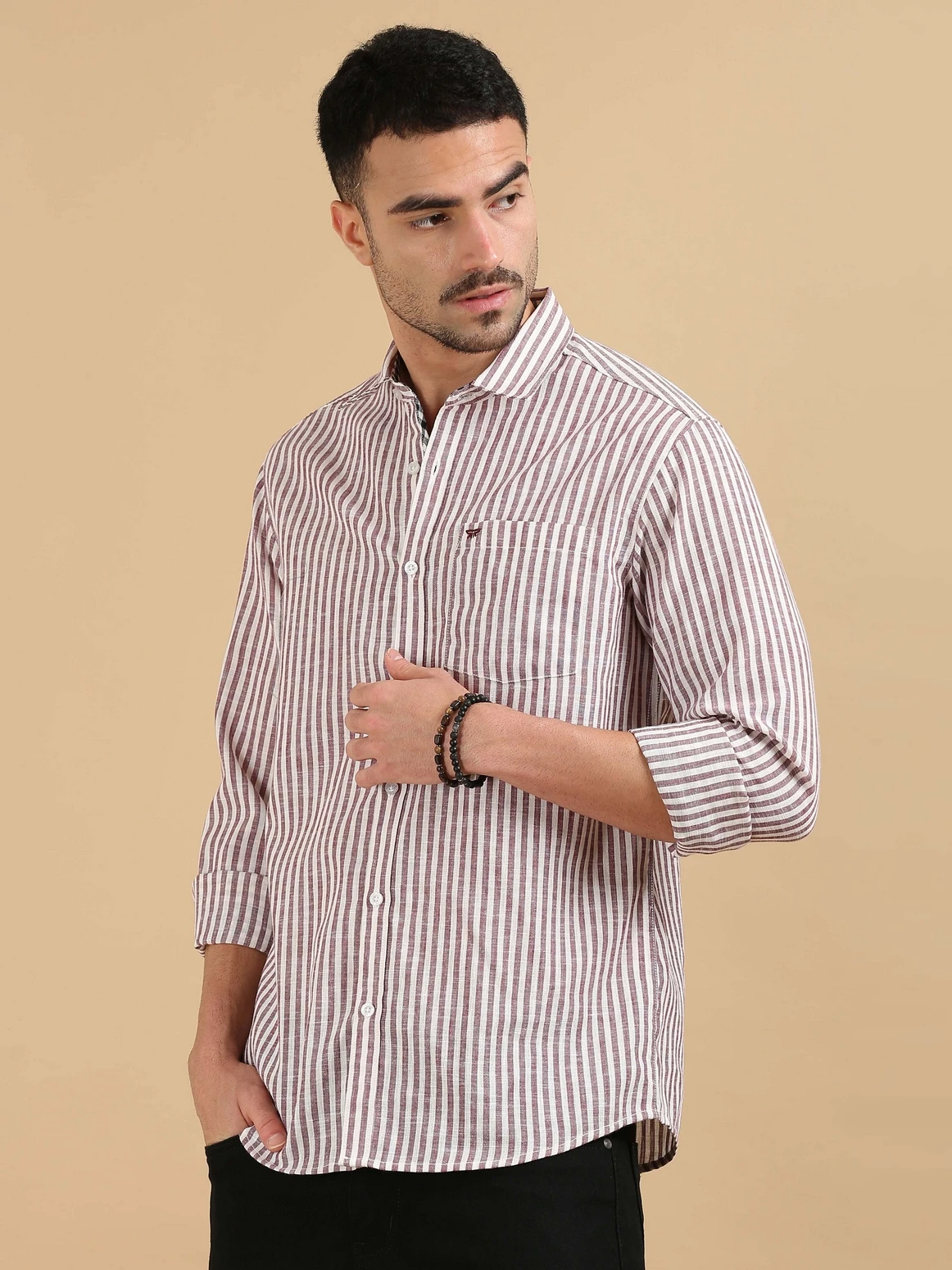Men’s Slub Cotton Medium Stripes Full Sleeve Shirt