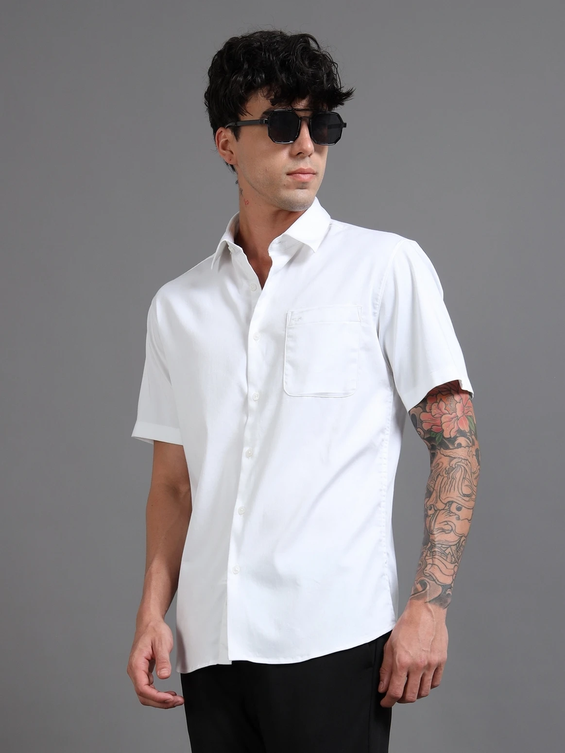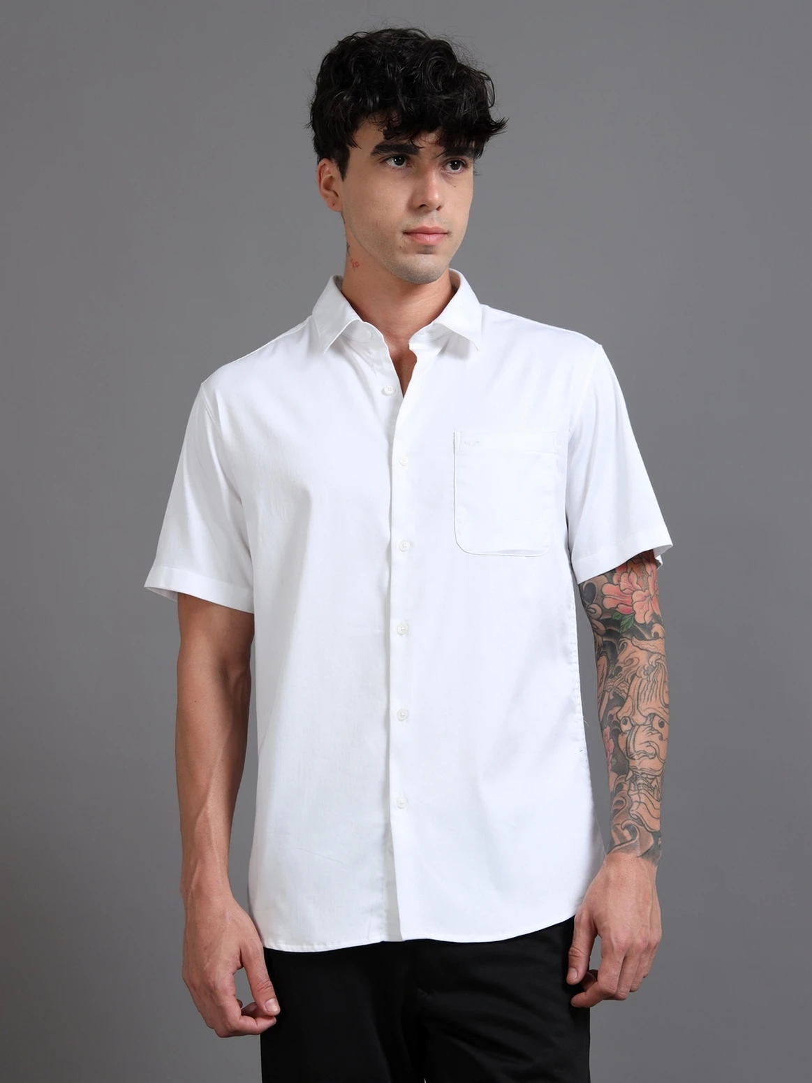 Crafted from a soft satin blend, this shirt brings a subtle sheen and smooth feel. The spread collar adds a touch of class perfect for evenings, events, or elevated casual looks