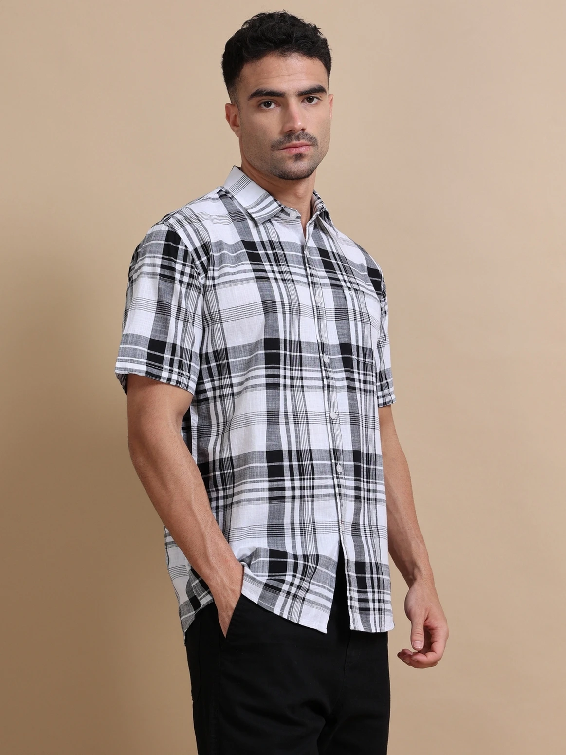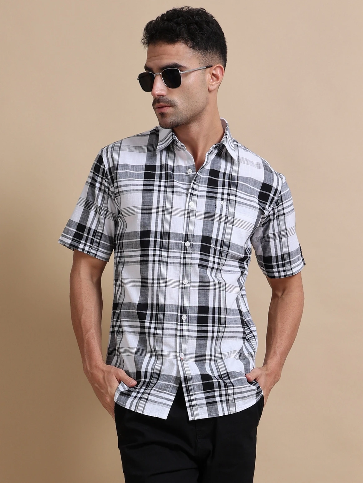 White & off WhiteTartan Cotton Shirt for Casual Wear