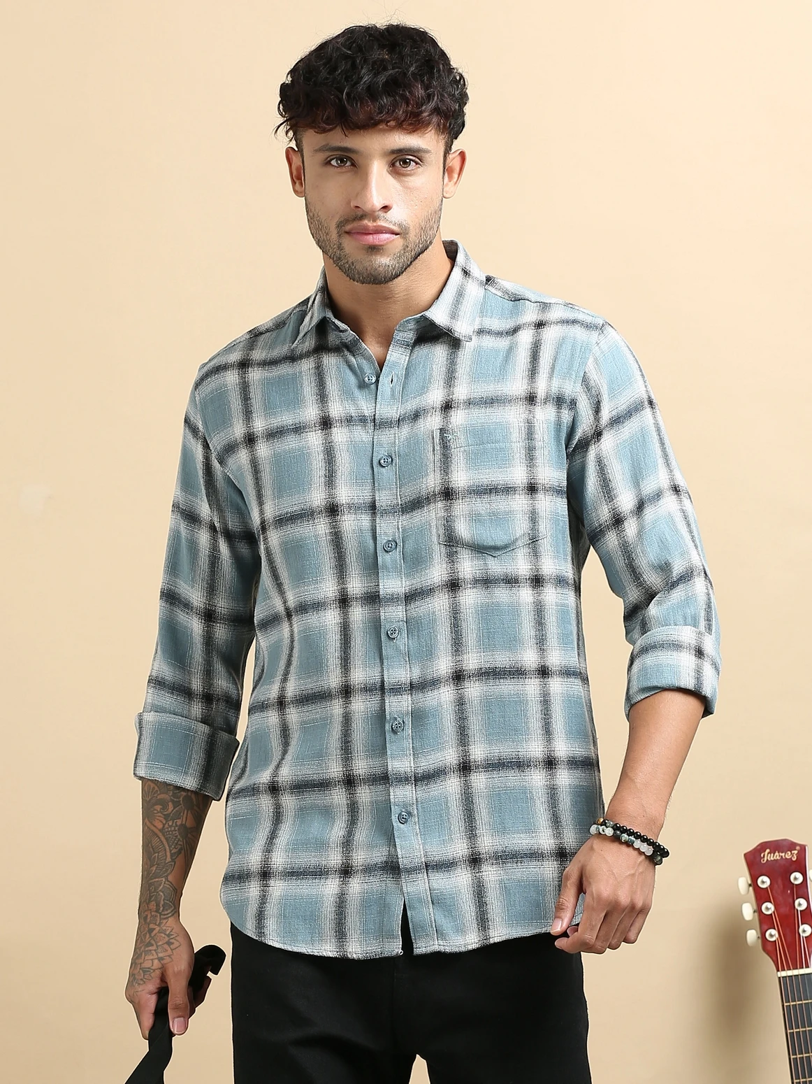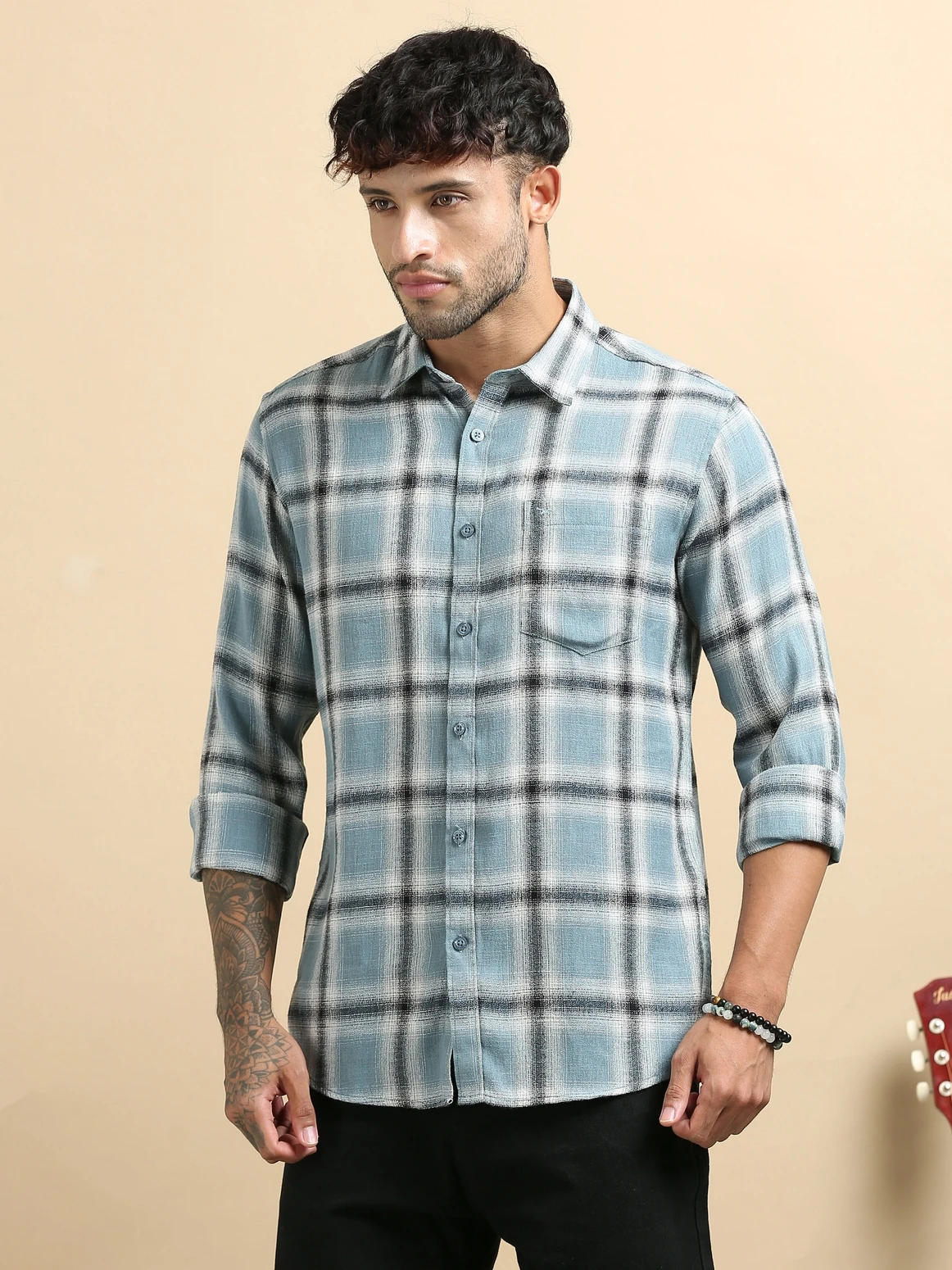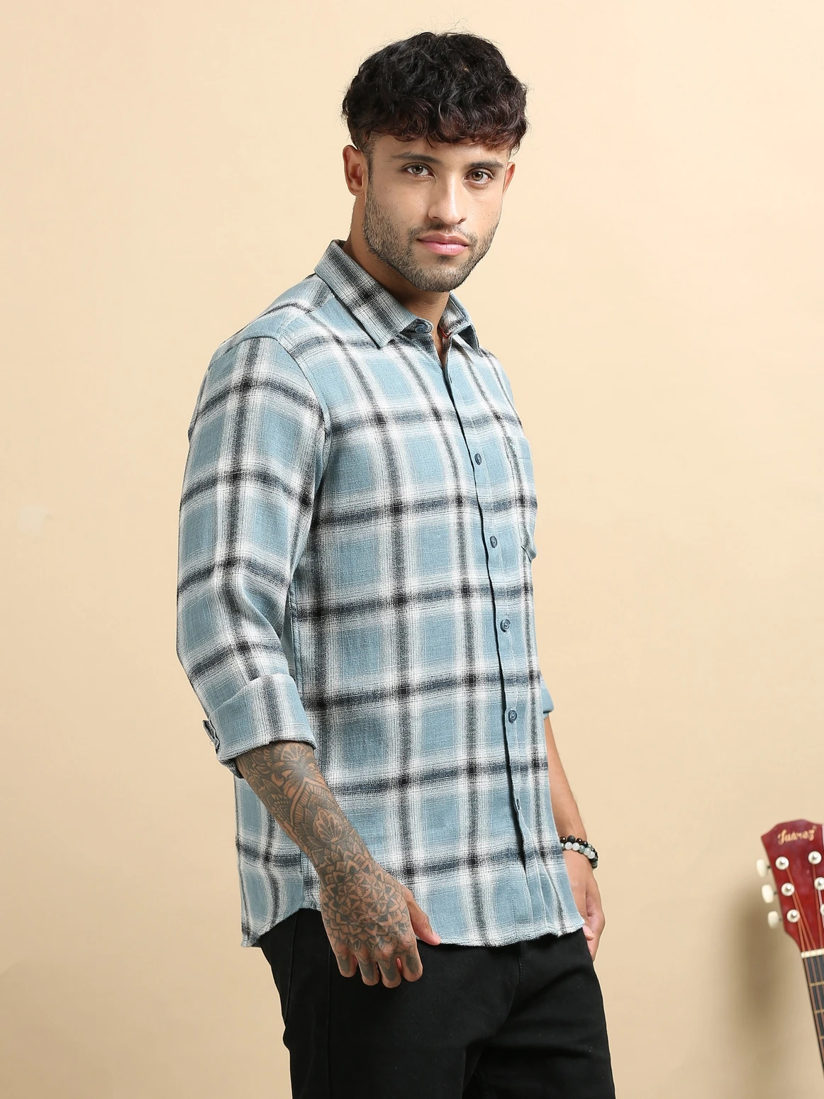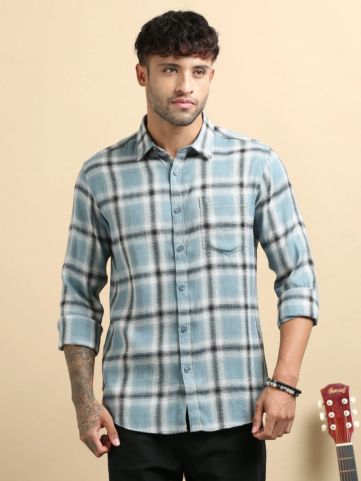 Stay effortlessly stylish with this linen checked stand collar shirt, crafted from breathable linen fabric for superior comfort and airflow. Featuring a modern stand collar and classic check pattern, this shirt blends traditional charm with contemporary design — perfect for warm-weather wear and smart casual occasions.