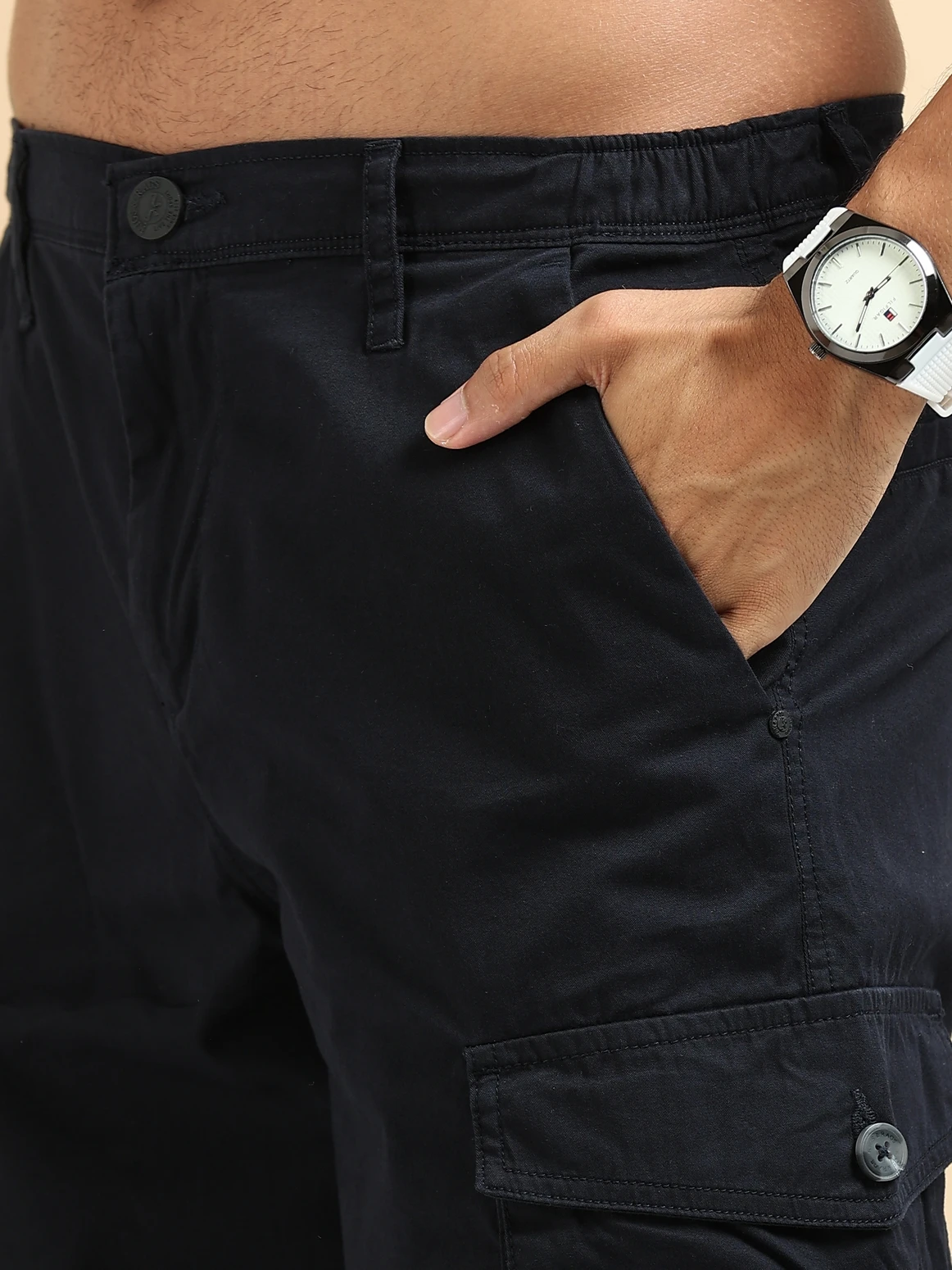 Men’s Mid-Rise Loose Fit Twill Lycra Cargo Pants