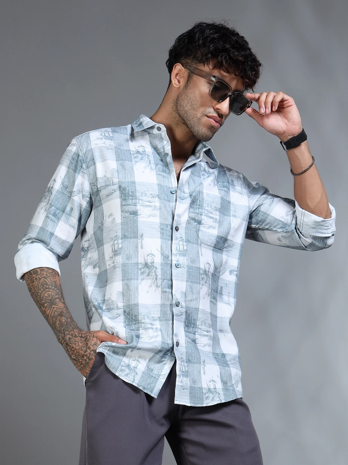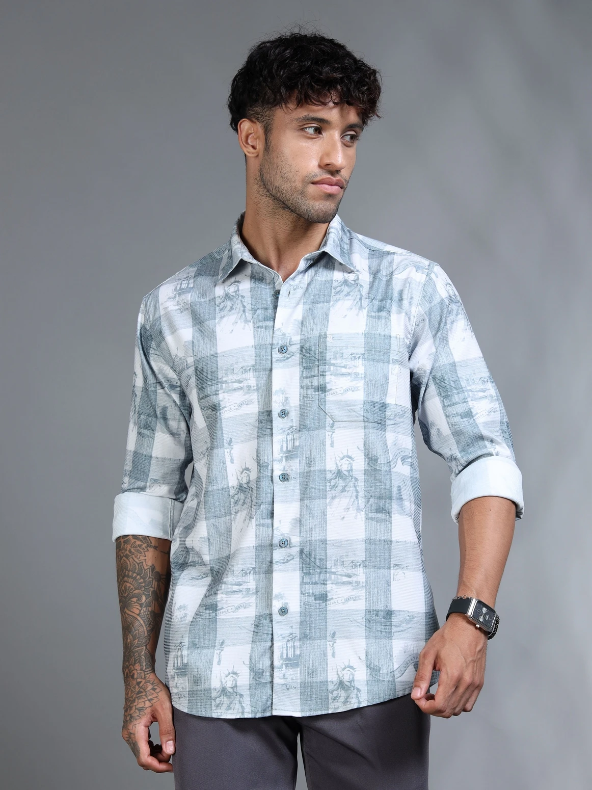 Men’s Self Design Printed Cotton Blend Check Casual Shirt
